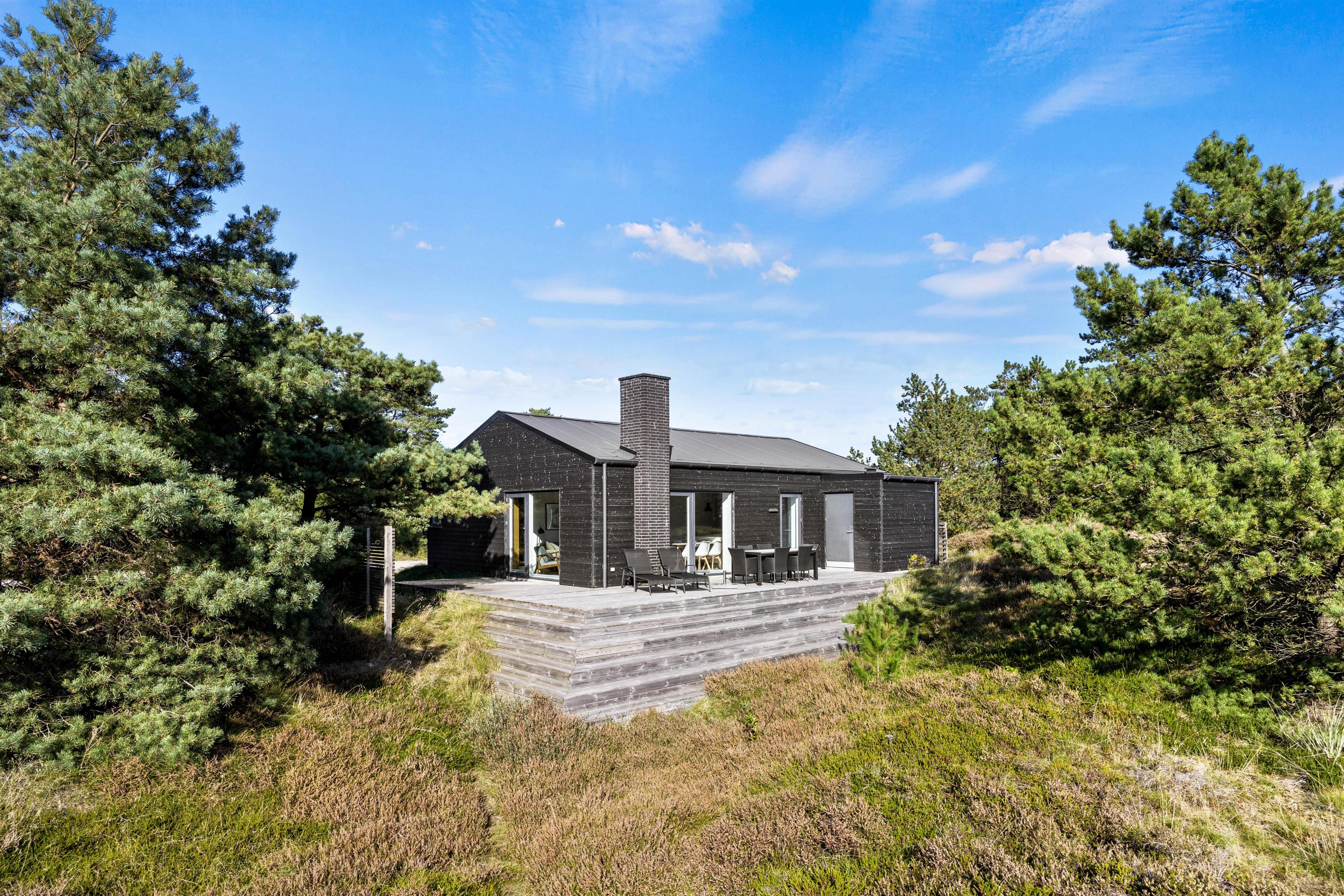 Feriehuset har en dejlig træterrasse, hvorfra I kan nyde den smukke natur. Her venter havemøblerne på jer! Nyd den friske luft og solens varme. Til aften kan I tænde op i grillen – nyd et lækkert sommermåltid på terrassen. Dét er ægte ferie hygge!