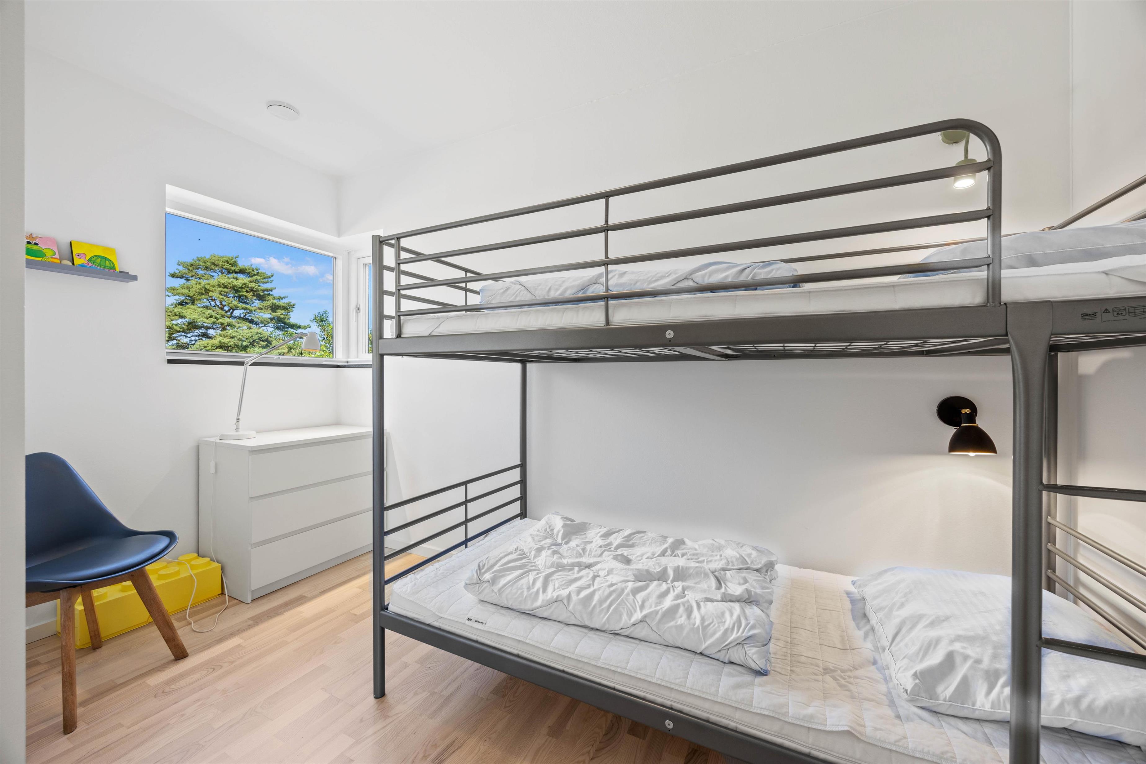 Skal I varmes ekstra godt igennem, har feriehusets på Sønderby Huk 8 også en sauna – perfekt efter en lang gåtur på stranden med hundene. Feriehusets 6 gæster kan fordele sig rundt på de 3 komfortable soverum, som sikrer alle en god nattesøvn. Det ene værelse har en køjeseng – et hit hos børnene!