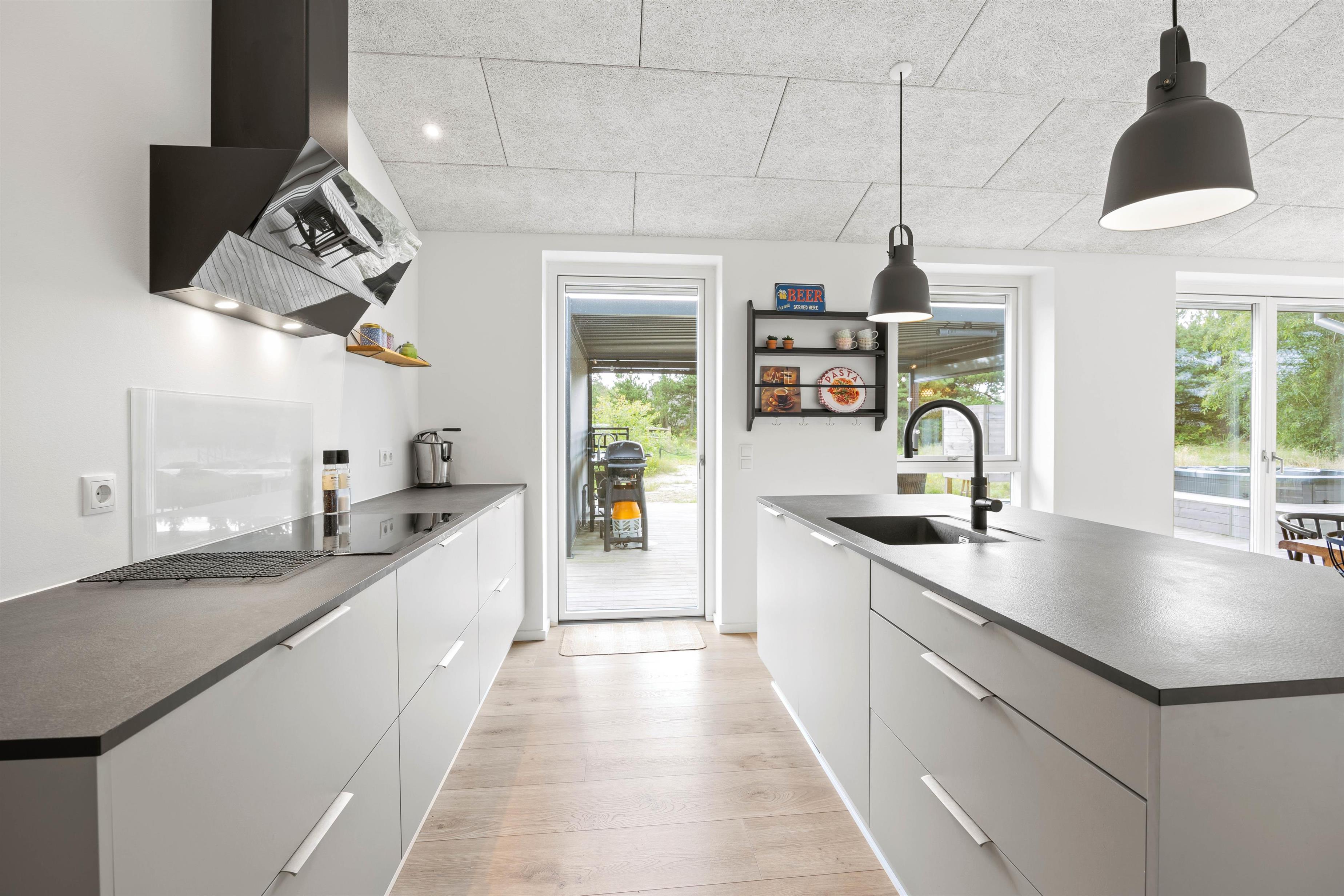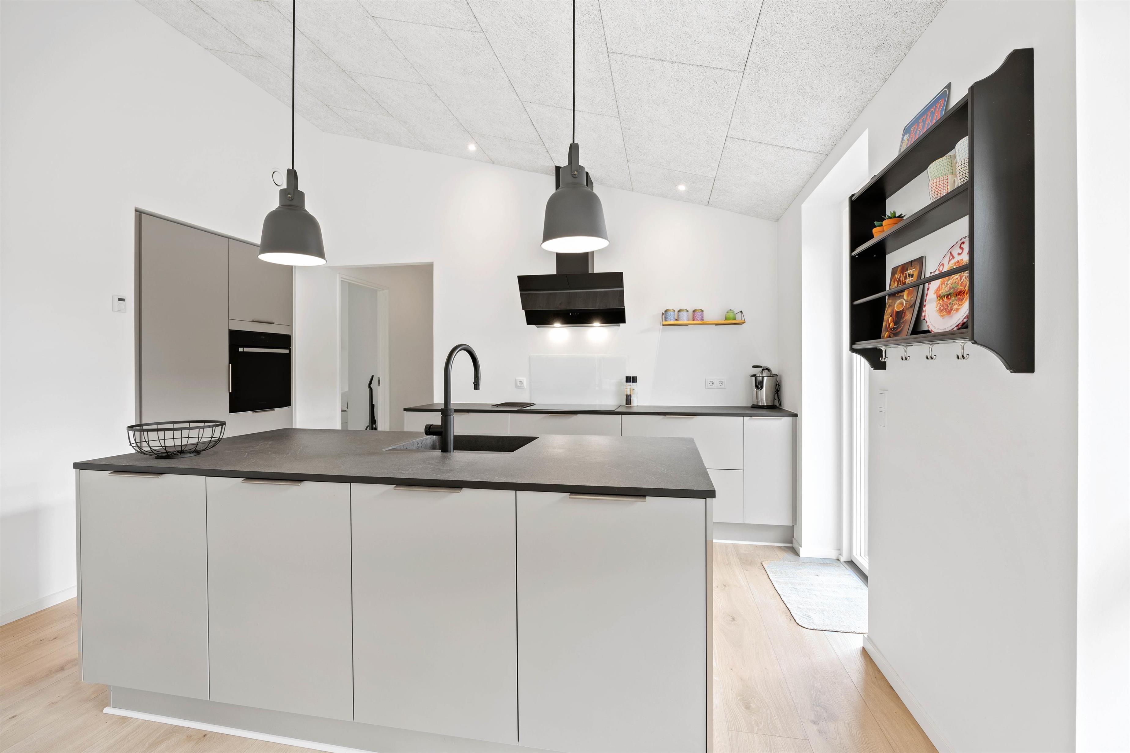 Det åbne køkken indeholder alt, hvad I behøver for at tilberede lækre hjemmelavede måltider til hinanden. Lad for eksempel børnene have en madaften, hvor de kan bestemme og tilberede menuen. På den store kogeø kan I servere en dejlig fælles buffet. Fra køkkenet er der udgang til den skønne terrasse.