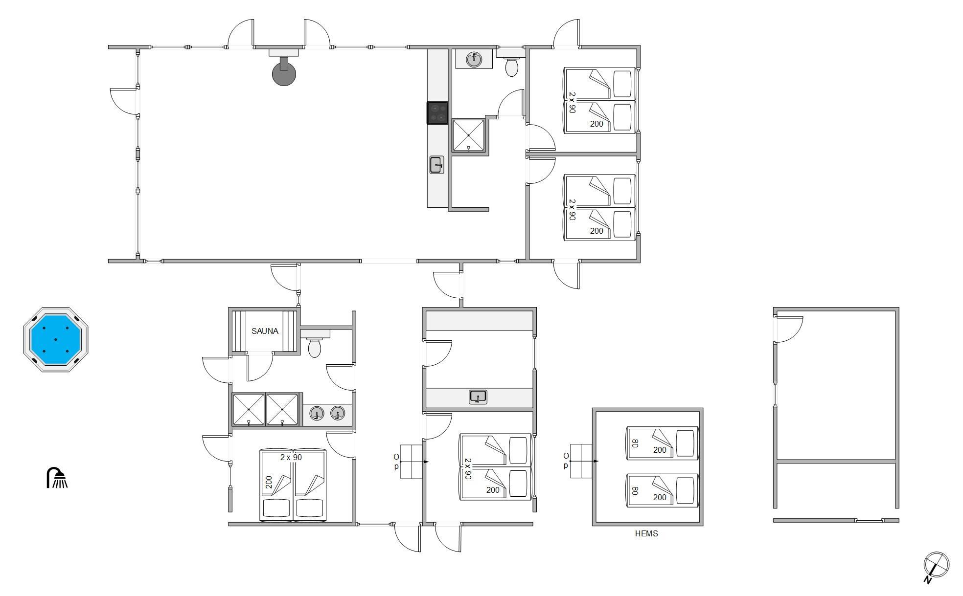 De 4 soveværelser med 8 komfortable enkeltsenge, der også kan bruges som dobbeltsenge, byder på en afslappende og energigivende nattesøvn i den friske vesterhavsluft. Læg mærke til, at luften gør noget godt for nattesøvnen. Der er også en hems med yderligere to sovemuligheder. Gulvvarme giver en hyggelig varme i soveværelserne, og der er garderobeskabe til rådighed.