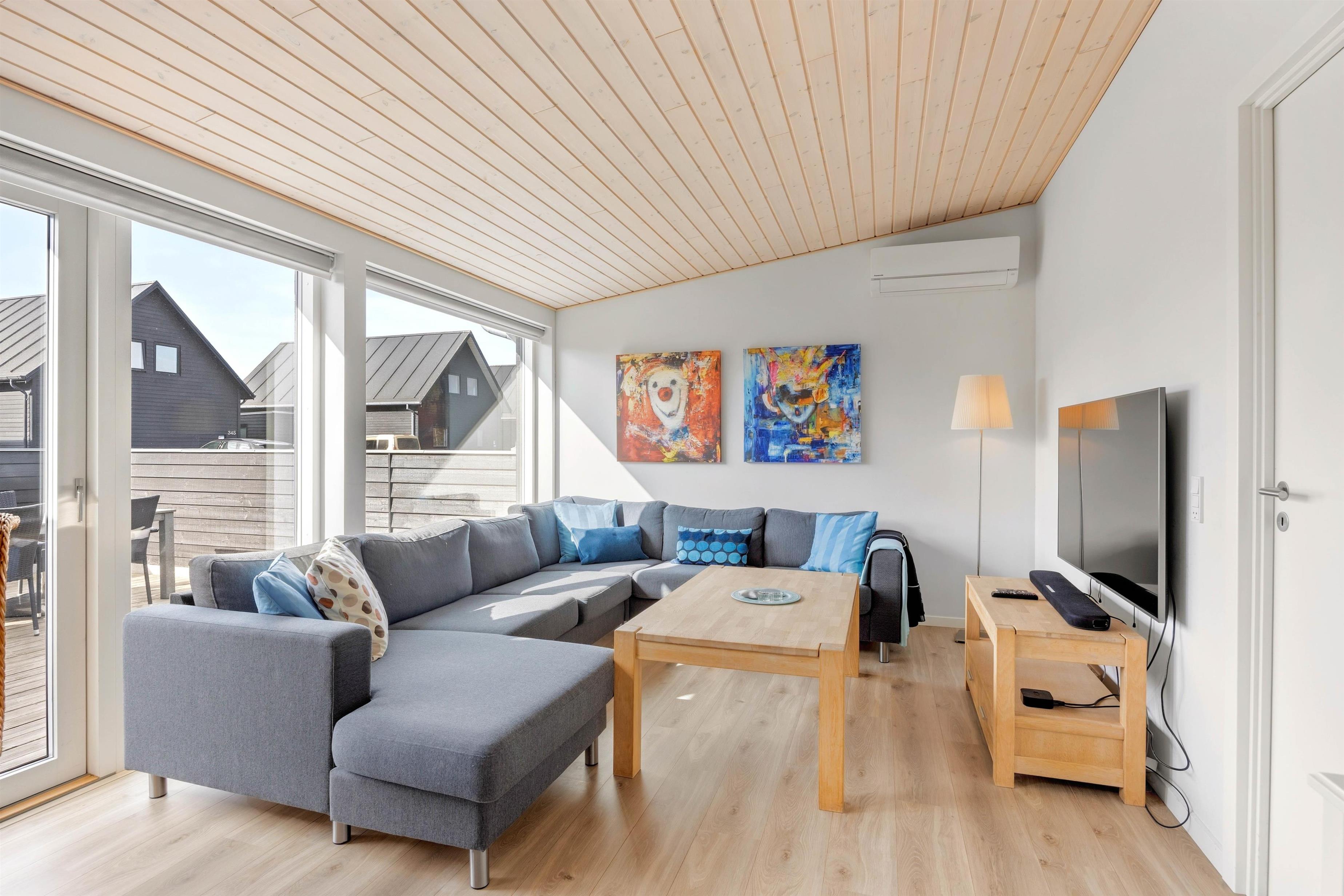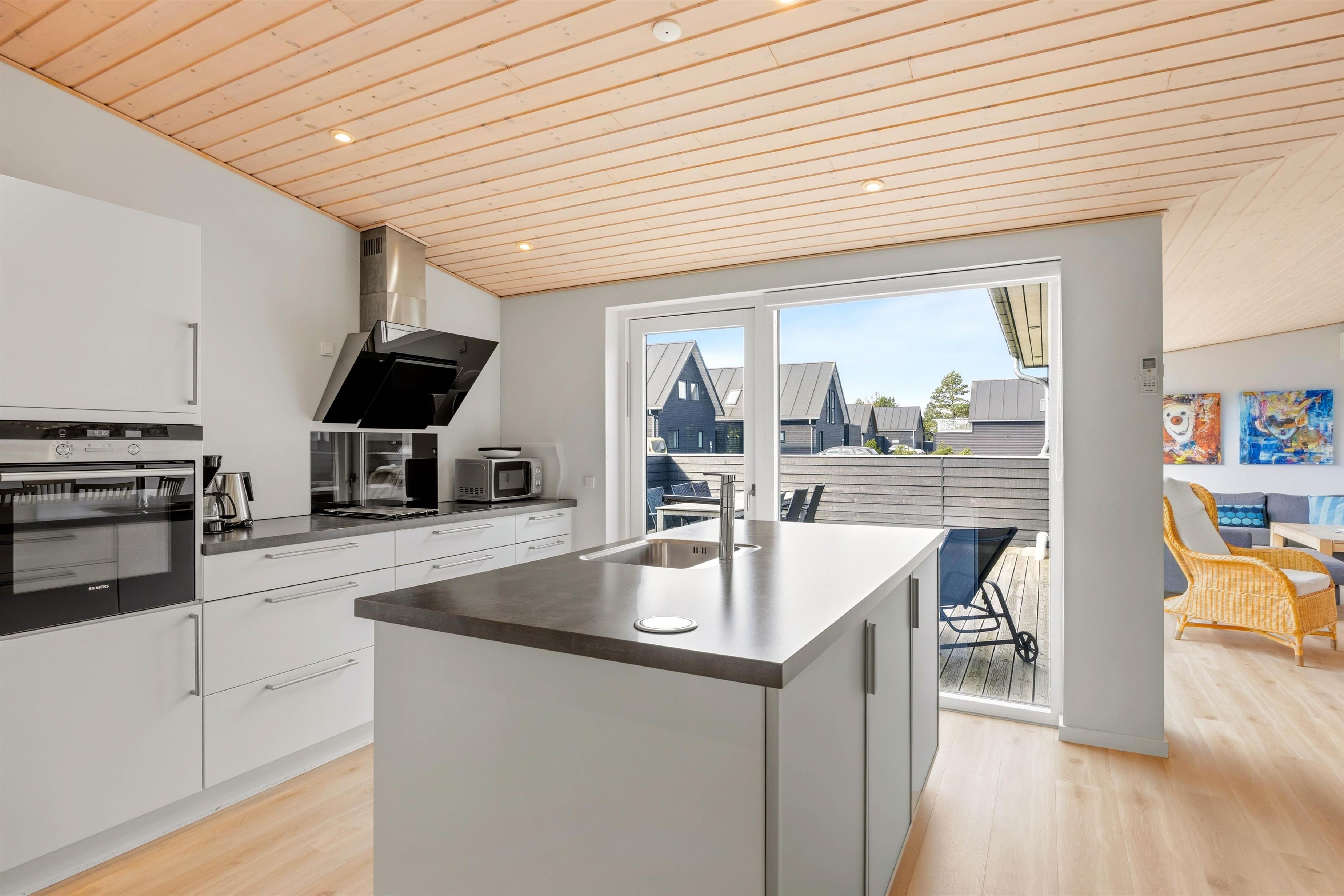 Takket være den praktiske beliggenhed når I badestranden Sønderstrand på kun 3,5 km, og indkøbsmuligheder ligger kun 1 km væk. En gennemtænkt indretning med opvaskemaskine, vaskemaskine, tørretumbler og el-ladestation sikrer, at I mangler ingenting på ferien.
