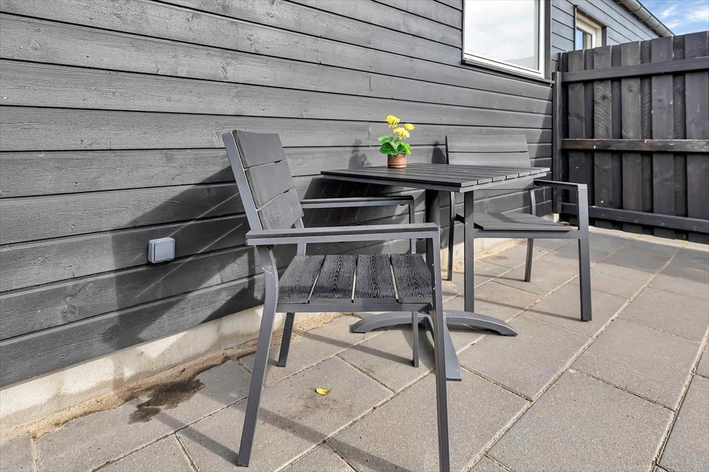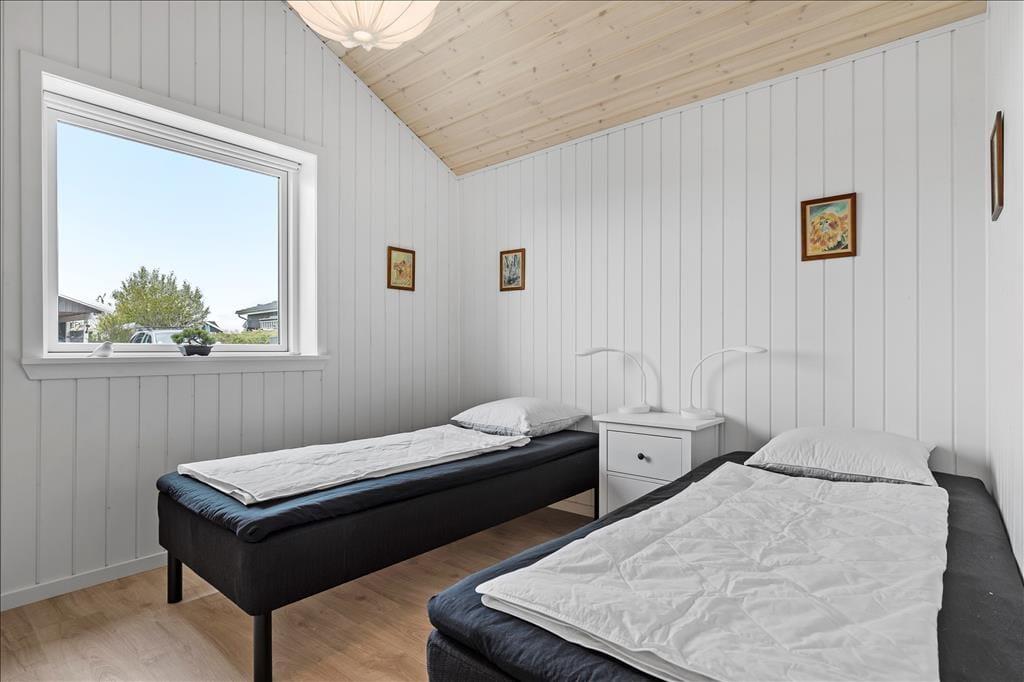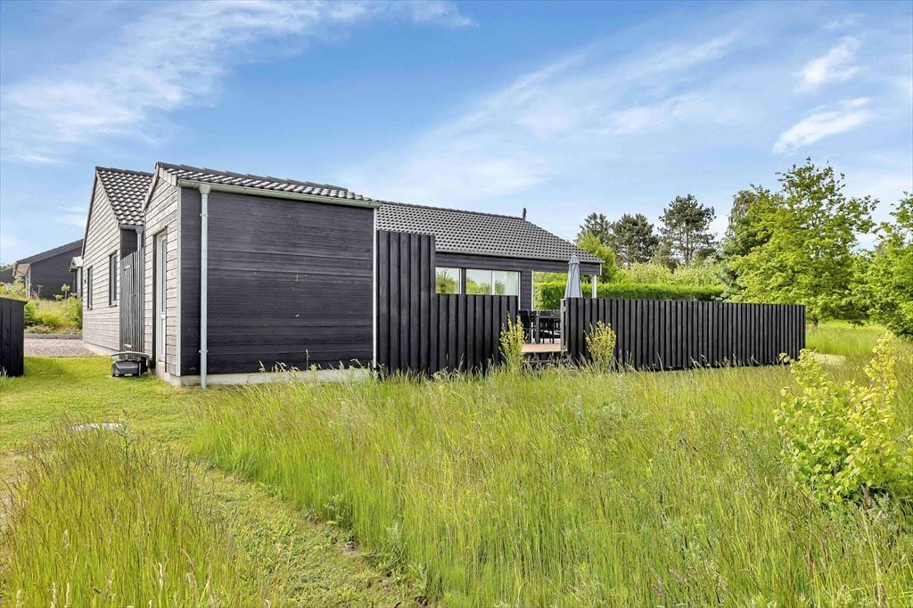 Huset er lyst og rummeligt og indeholder stue med store panoramavinduer, fjernsyn med chromecast samt varmepumpe. Køkkenet er åbent og indeholder opvaskemaskine og mikroovn. Spisepladsen indbyder til hyggelige stunder for hele familien. Grundet panoramavinduer i hele stue/køkkenområdet, er lysindfaldet perfekt. Der er 3 gode soveværelser, hvoraf det ene er med dobbeltseng på 150x200cm og de 2 med enkeltsenge, der kan sættes sammen til dobbeltsenge. Huset er omgivet af en kæmpestor og smuk træterrasse, som giver en naturlig forlængelse af stue og køkken og med meget plads til at boltre sig. Terrassen på over 100m2 er indhegnet og derfor oplagt til leg for børn. Terrassen indeholder også dejlig udebruser til varme dage efter strandbesøg eller leg. Grunden er naturgrund med shelter og bålsted.