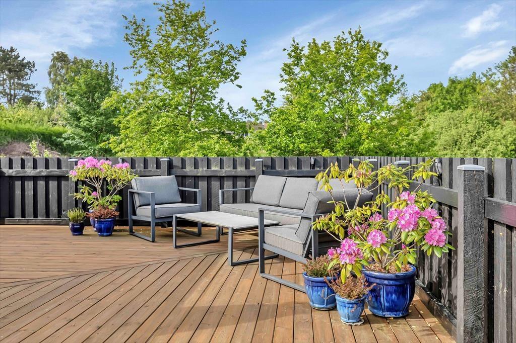 Omkring huset, er der er store fælles arealer til leg og spil samt ophold. Herfra går der en direkte og hyggelig sti ned til den børnevenlige strand.