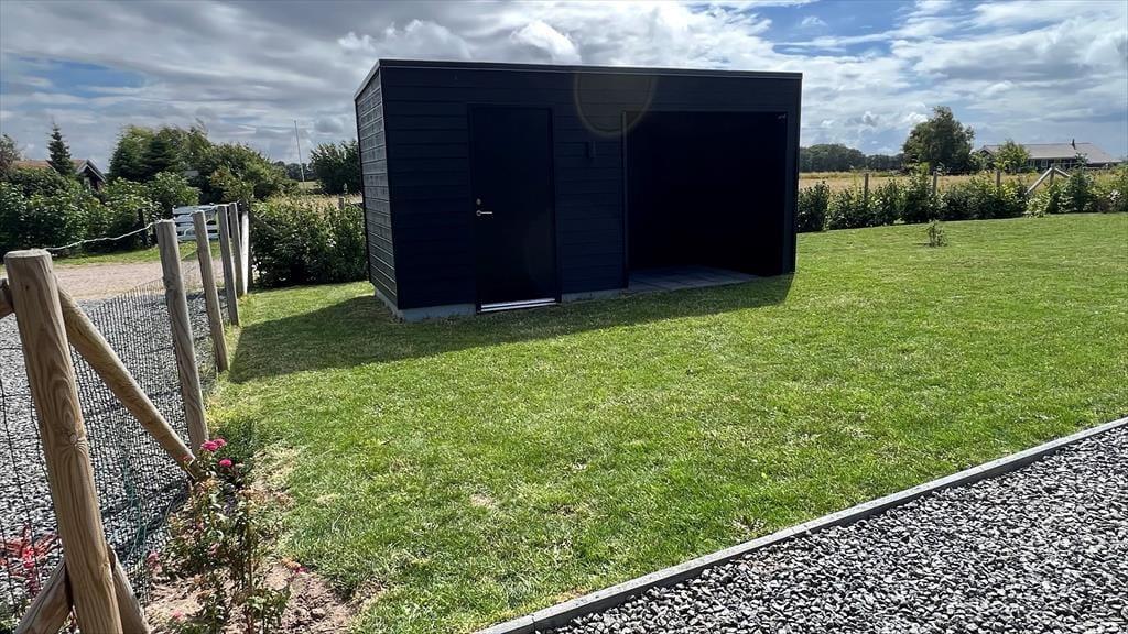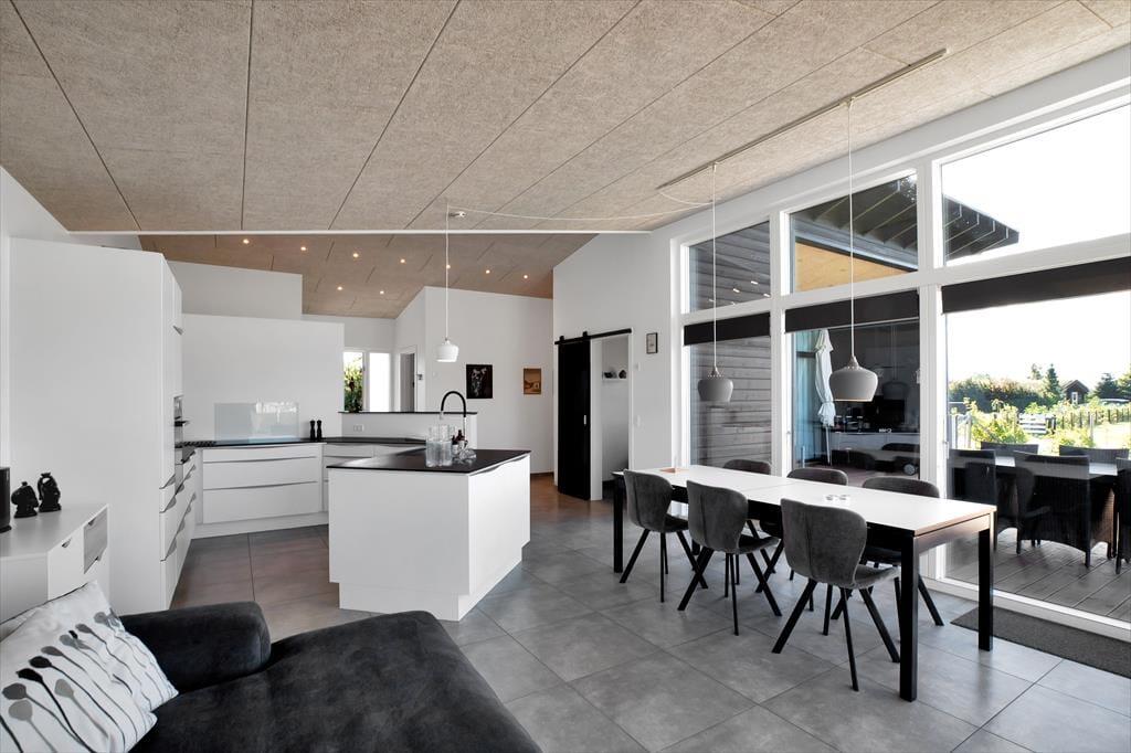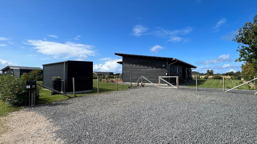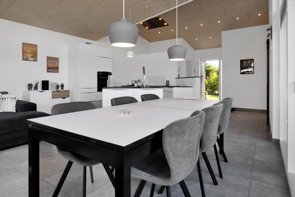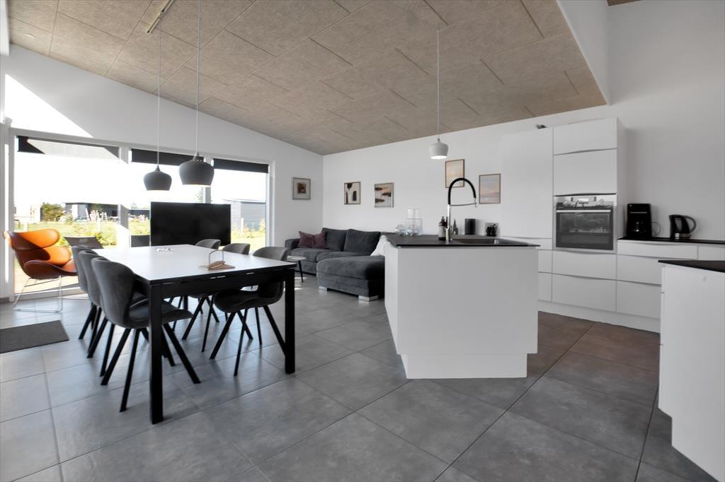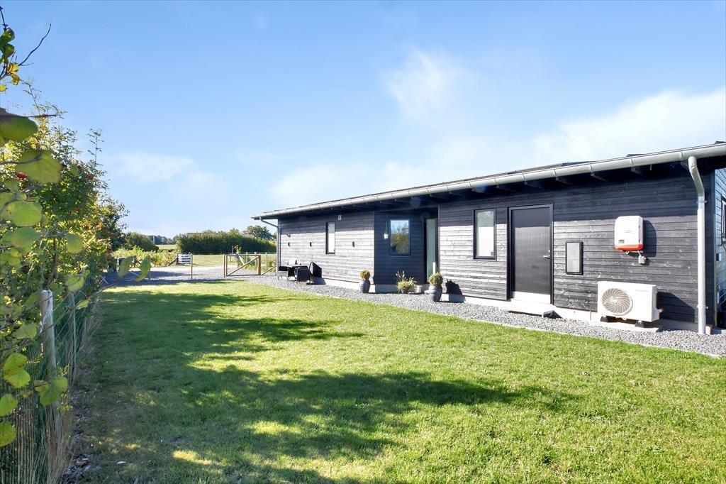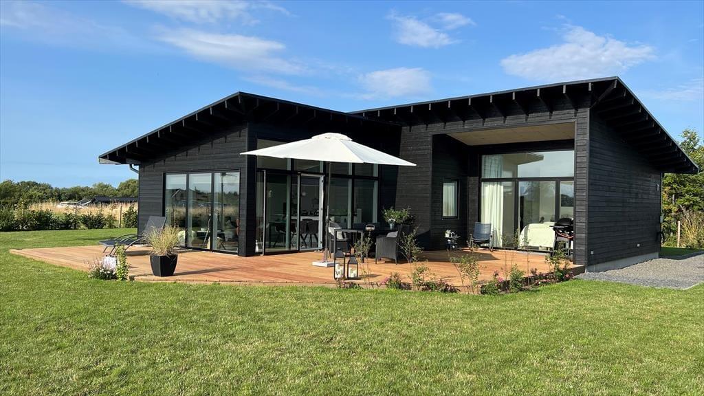 Alt i huset fremstår lyst, nyt og særdeles indbydende. Den sydvestvendte store terrasse består af en overdækket og en åben afdeling og har sol i alle eftermiddags- og aftentimerne med fin udsigt til solnedgang. Her kan I fordybe jer i en god bog og nyde et godt glas vin. Haven byder i øvrigt på god plads til spil og lege. Huset er et lavenergihus, bygget i gode materialer, hvormed energiforbruget er minimalt. Det er ligeledes muligt at oplade el-bil, via husets lade stander. Der er Apple tv med både danske, tyske og andre nordiske kanaler samt mulighed for at streame via husets gode internet forbindelse. Husk også at nyde det skønne solnedgangs loungeområde med bålsted.
