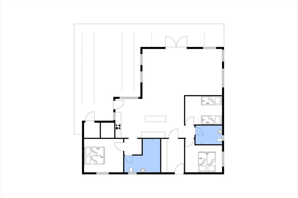 Sommerhuset fremstår lyst, indbydende og moderne. De store vinduespartier giver masser af lys inde i sommerhuset, og da huset ligger højt, så er der endda kig ud til den skønne natur. Sommerhusets planløsning er ideelt for 2 familier. Huset har et stort køkken med masser af udstyr så der kan både bages pandekager eller varmes cacao. Helt ideelt til både et sommer eller et vinterophold. I den store stue er der plads til alle når der skal hygges i sofaen om aftenen. Husets store hems vil helt sikkert glæde børnene, her kan de hygge sig i deres egen lille ”hule” og spille spil. Til de varme sommerdage er der ventilatorer på værelserne og på hemsen.