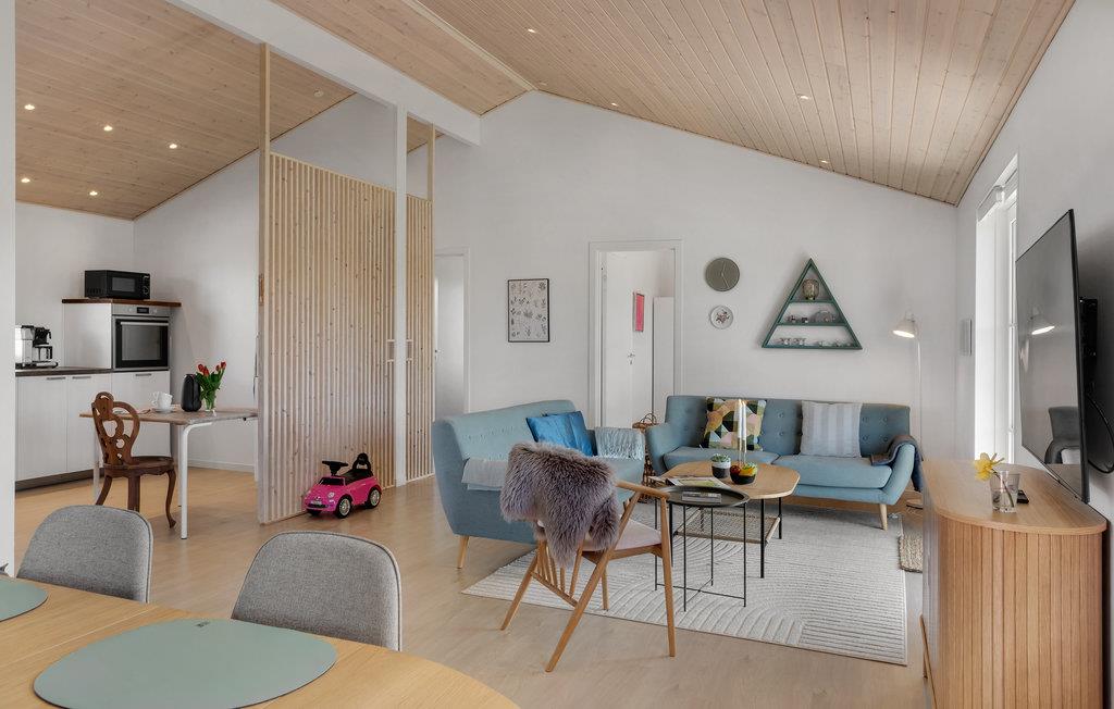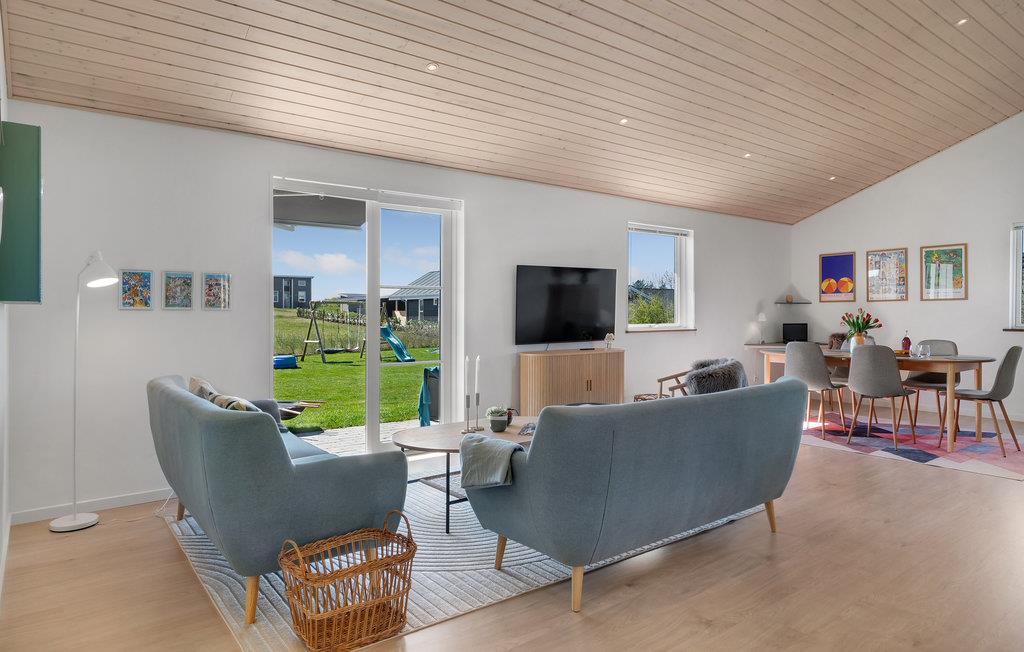 Det børnevenlige hus ligger i gåafstand til stranden. Sommerhuset danner den perfekte ramme om en aktiv ferie for hele familien. I de lyse værelser med loft til kip, moderne indretning, markante træelementer og skønne fællesområder vil I uden tvivl føle jer godt tilpas. Nyd sommerstemningen og glæd jer til hyggelige aftener i de indbydende sofaer.