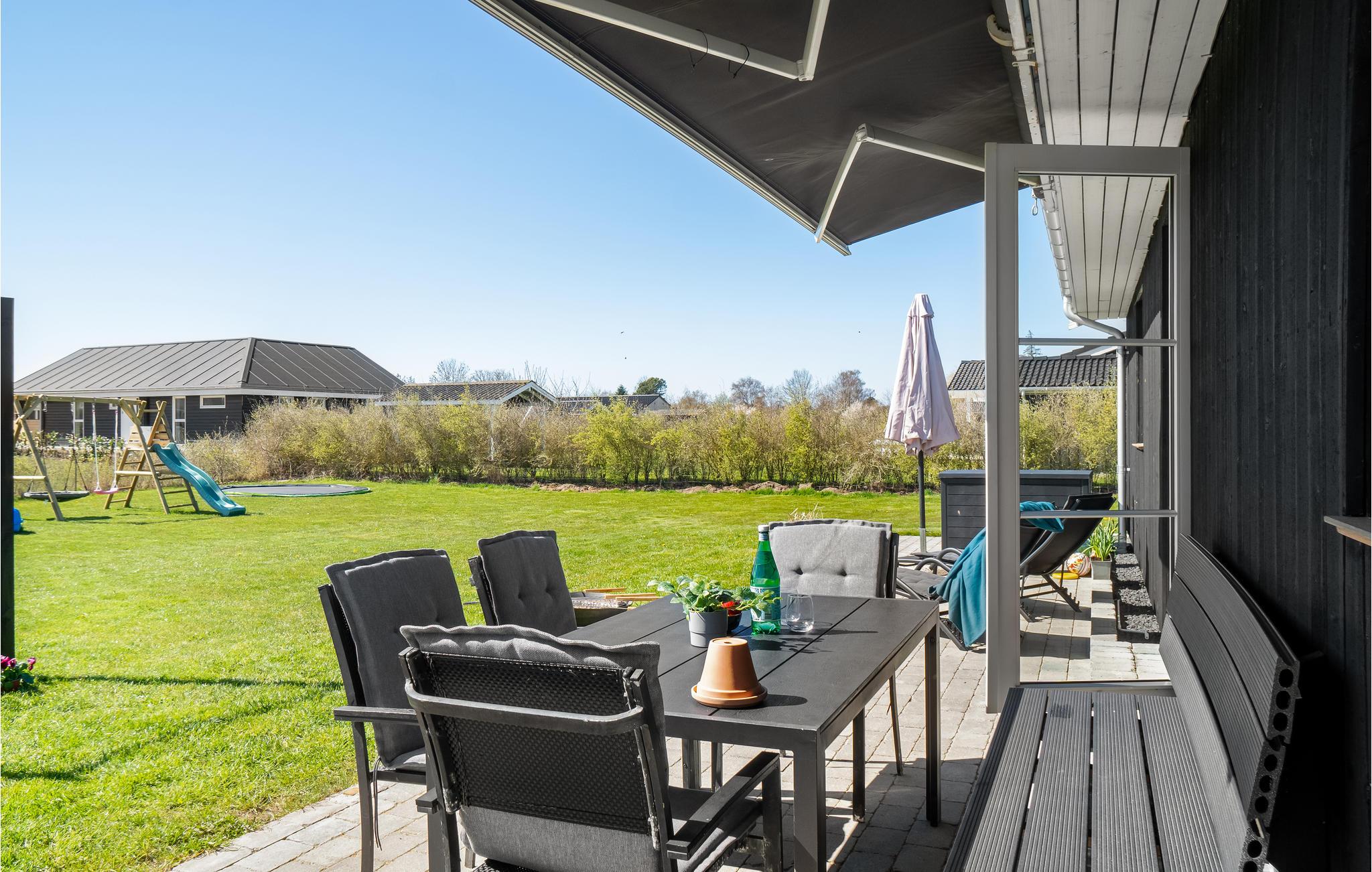 Haven omkring huset er et sandt legeparadis for børn. Se dem hoppe til svimlende højder på trampolinen, mens I læner jer tilbage på terrassen i det varme solskin. Tilbered den friskfangede fisk på grillen.