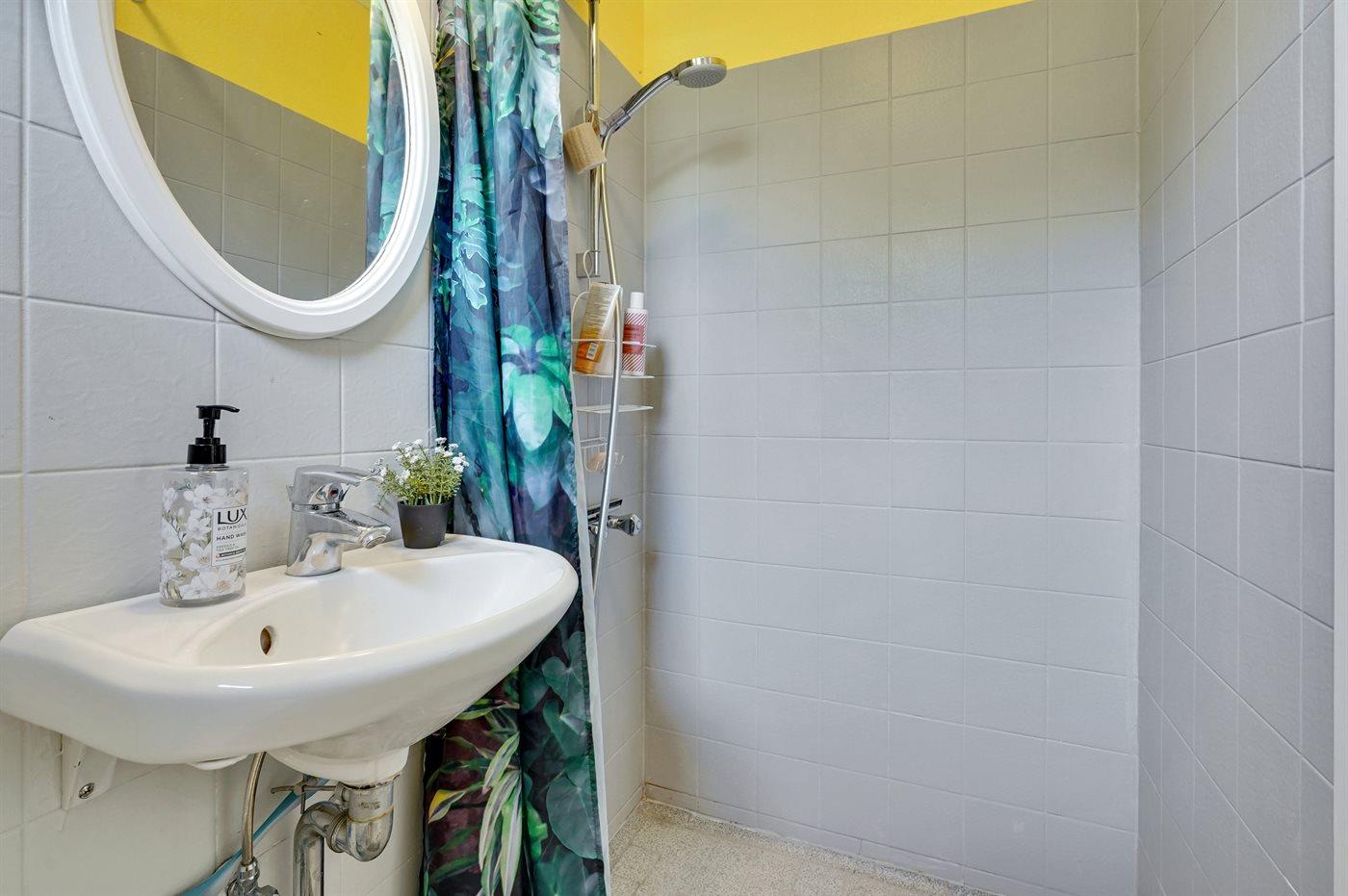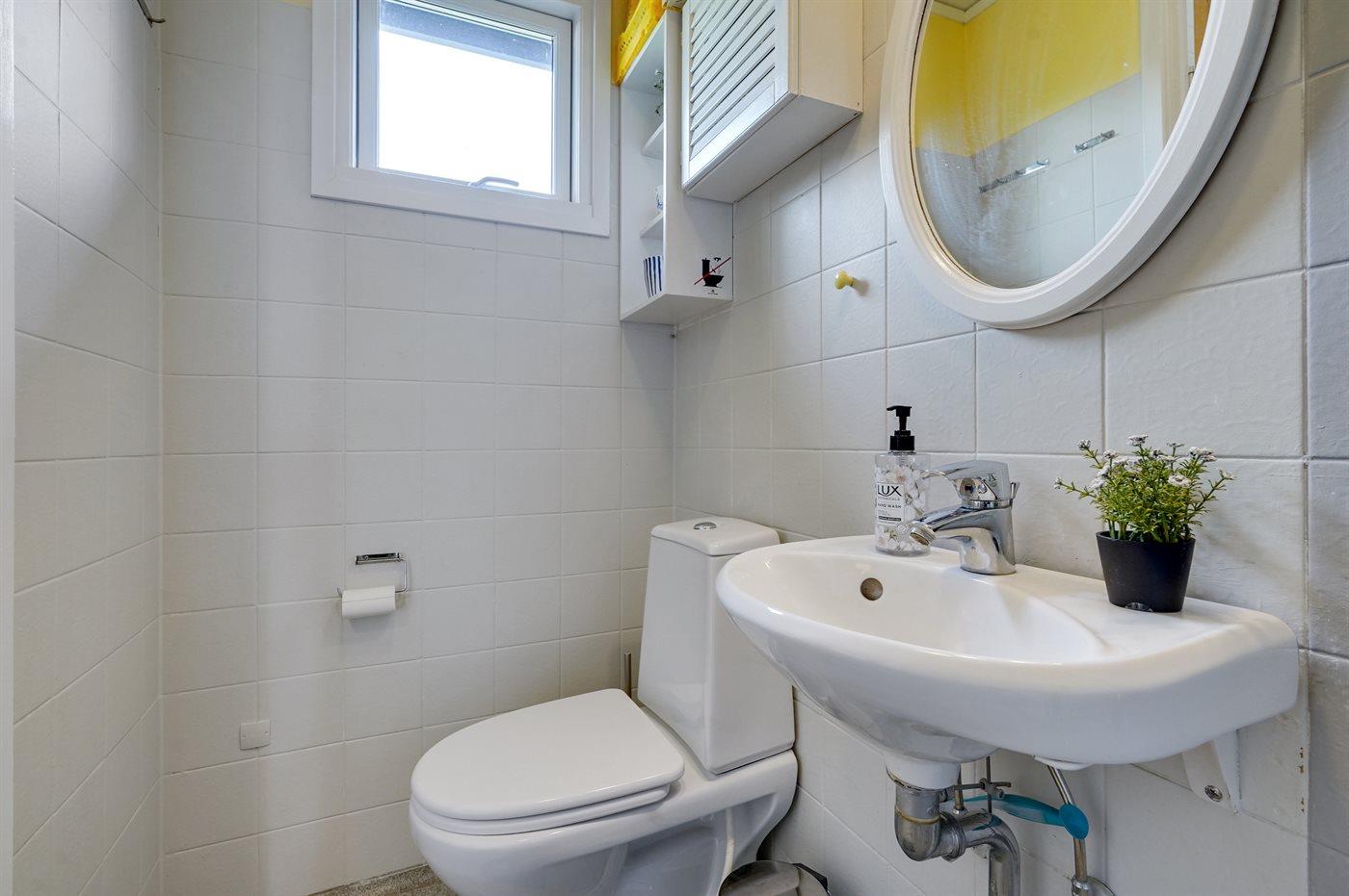Der er toilet, håndvask og bruseniche. Der er gulvvarme på badeværelset.
