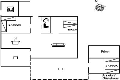 Der er 3 soveværelser. Sovepladserne fordeler sig på 2 sovepladser i dobbeltseng, 4 sovepladser i enkeltsenge hvoraf de 2 enkelte senge er i annekset.