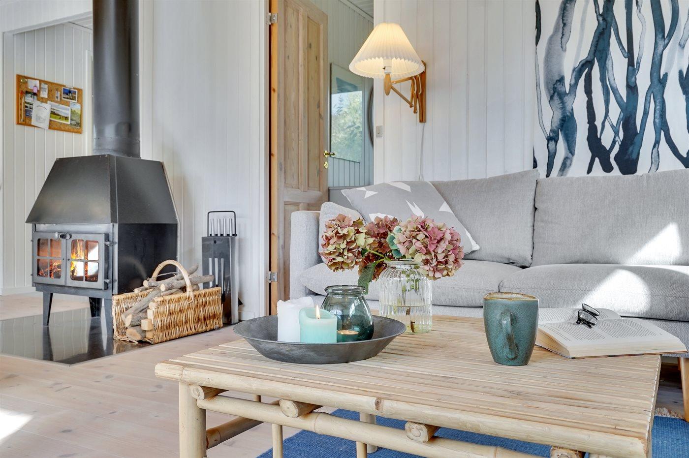 I stuen er der brændeovn og energibesparende varmepumpe.