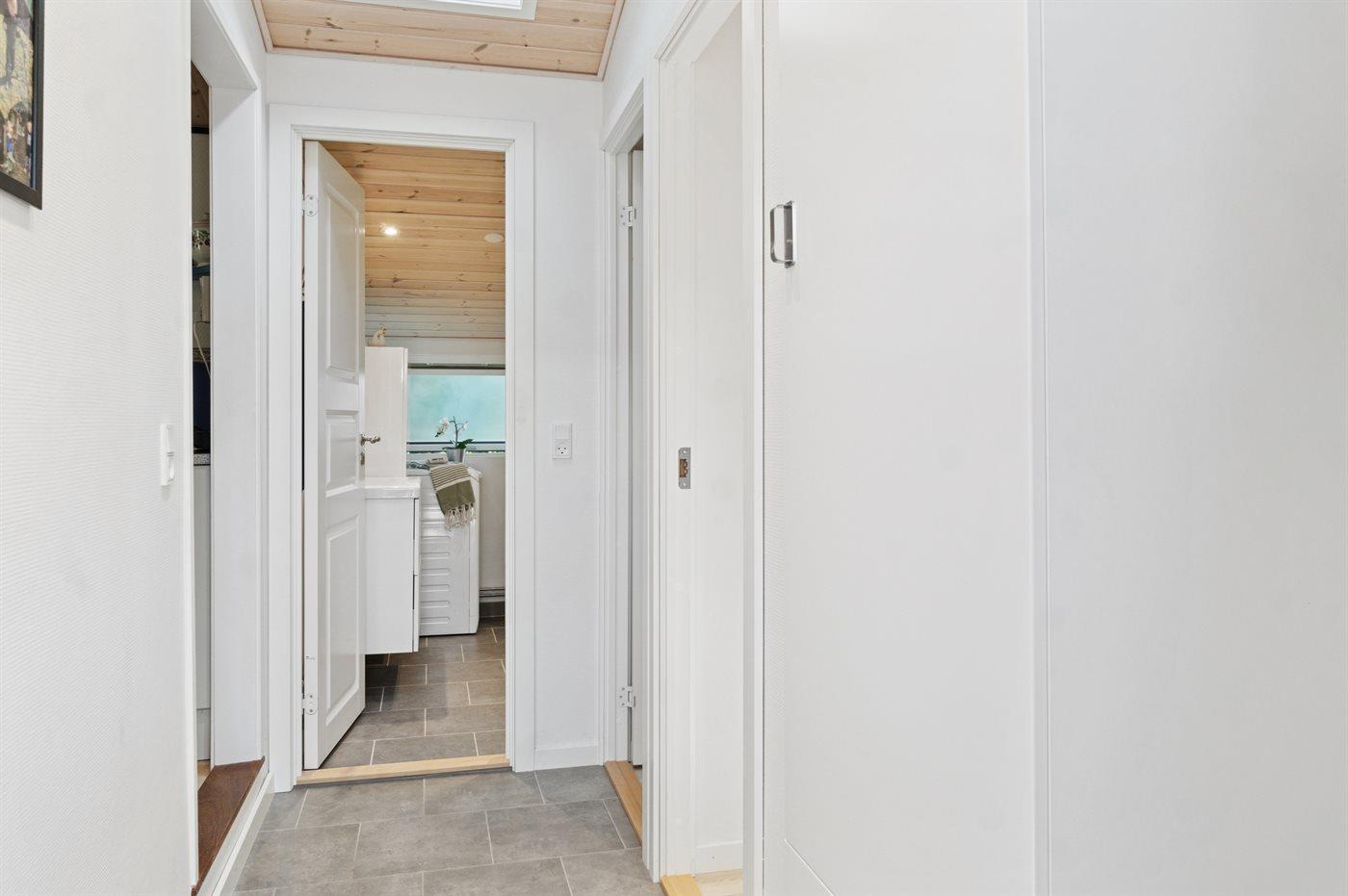 Huset er beliggende i et roligt sommerhusområde og ligger fredeligt og ugenert for enden af en blind vej. Børn og kæledyr kan derfor færdes helt sikkert.