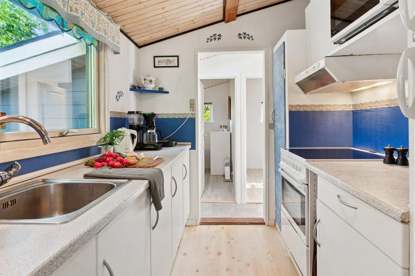 Køkkenet er udstyret med 1 køleskab. Der er 4 keramiske kogeplader, varmluftovn, mikrobølgeovn samt opvaskemaskine.