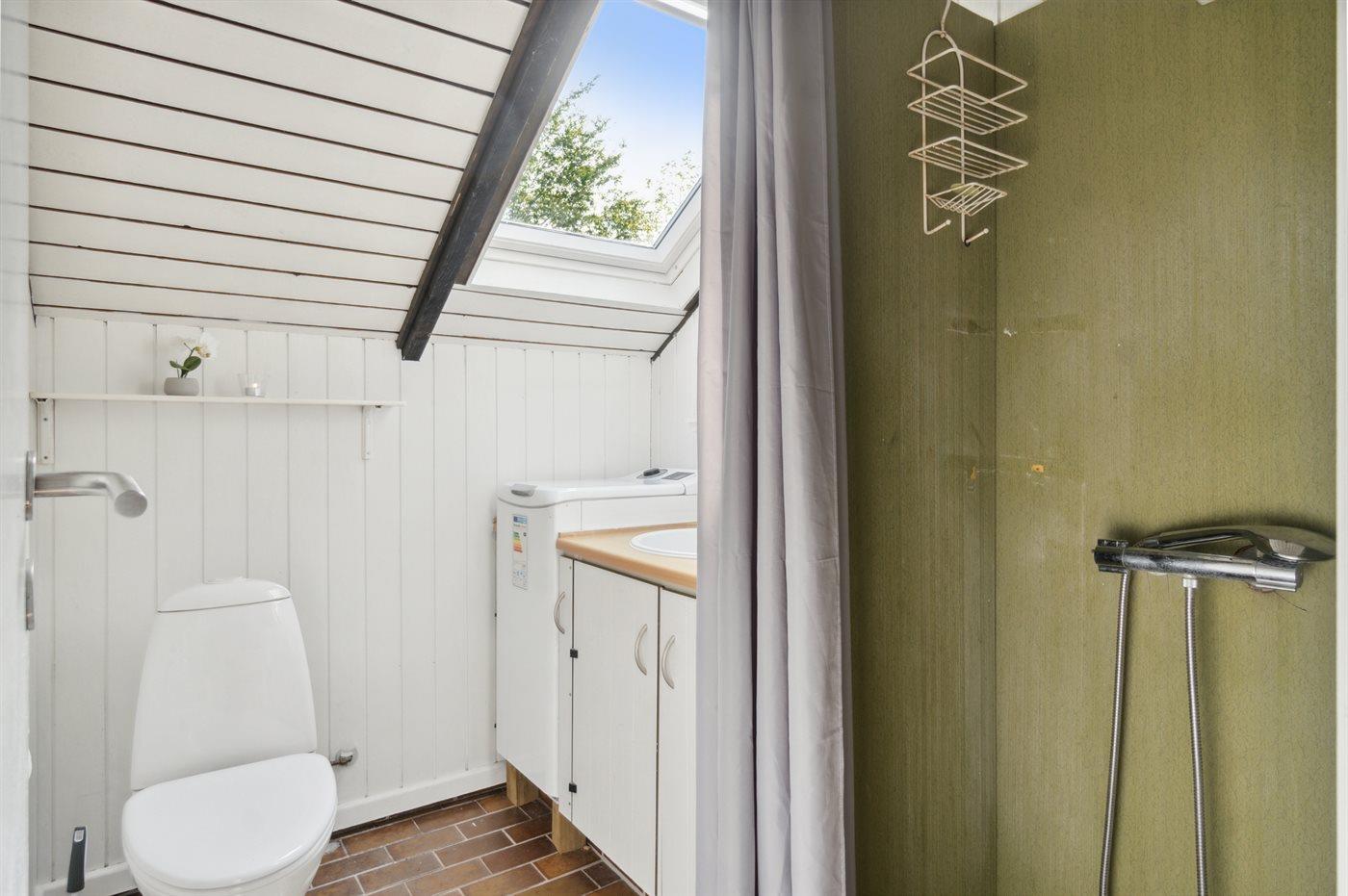 Der er 1 badeværelse med bruseniche og 1 toilet.