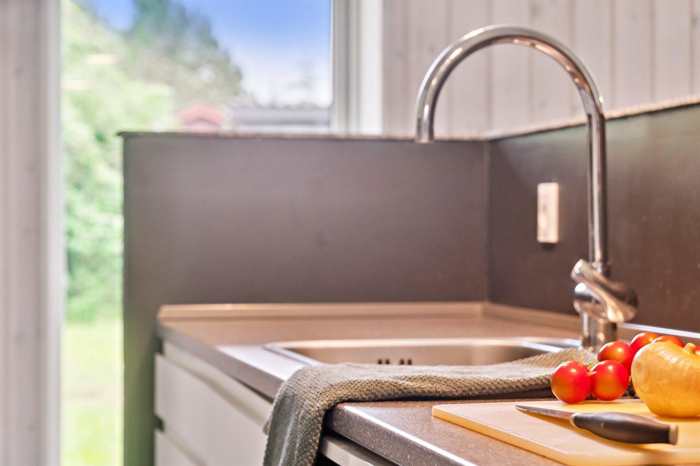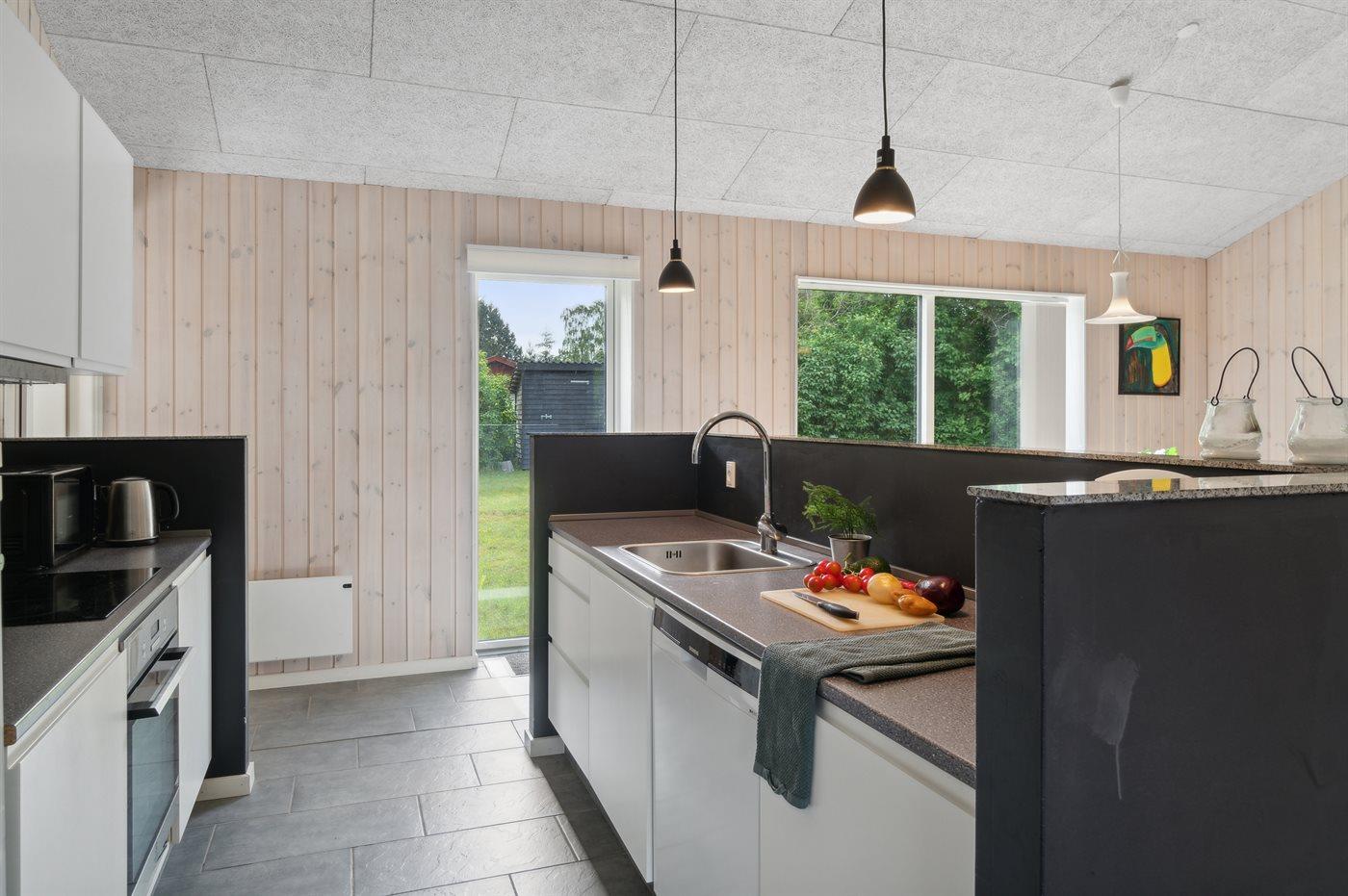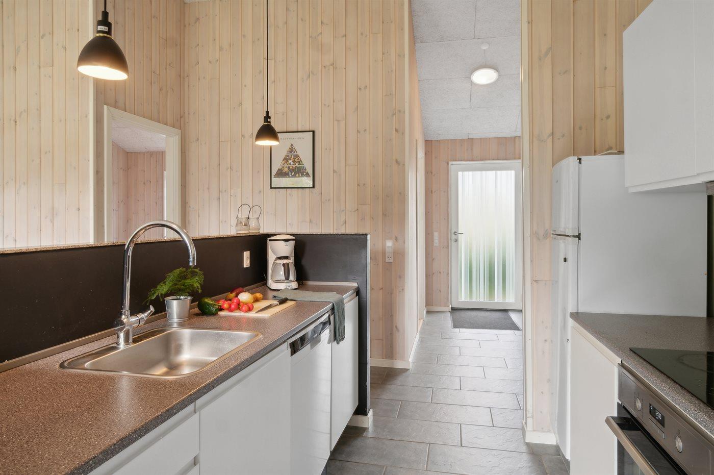 Køkkenet er udstyret med 1 køleskab. Der er 4 keramiske kogeplader, varmluftovn, mikrobølgeovn samt opvaskemaskine.