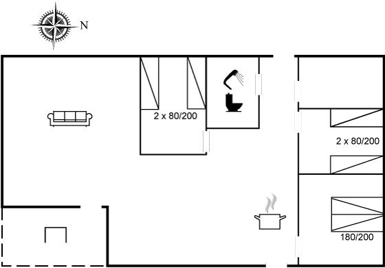 Der er i alt 3 soveværelser. Sovepladserne fordeler sig på: 2 sovepladser i dobbeltseng. 4 sovepladser i enkeltsenge. Derudover er der 1 stk. barneseng.