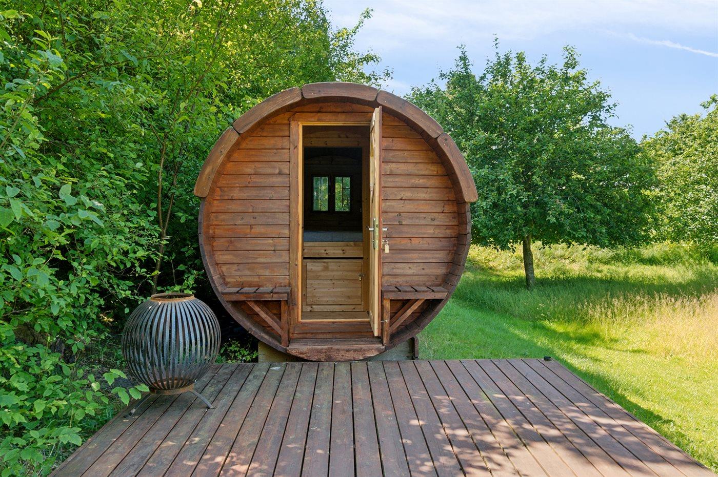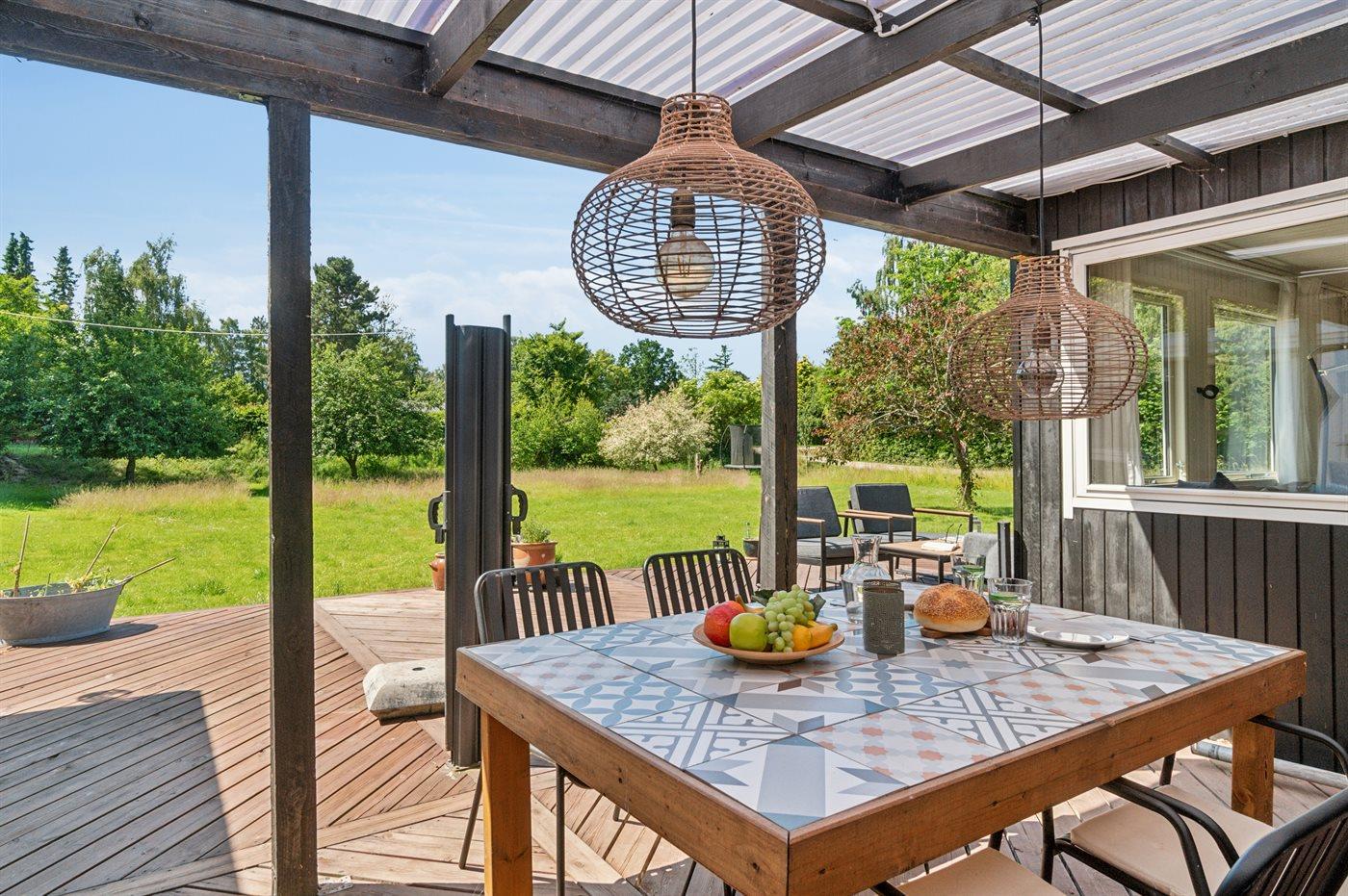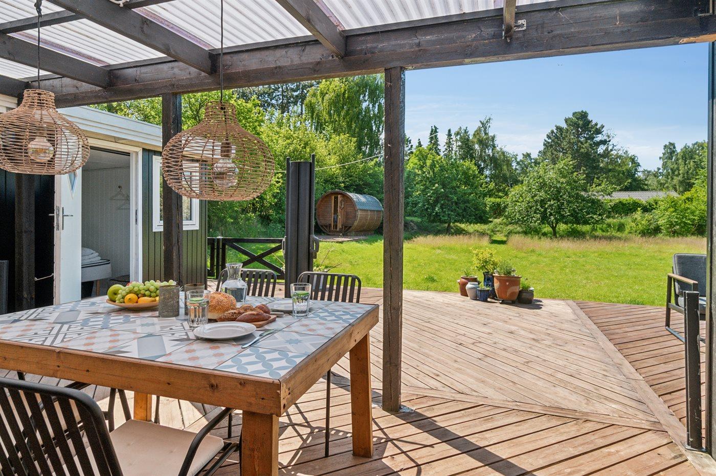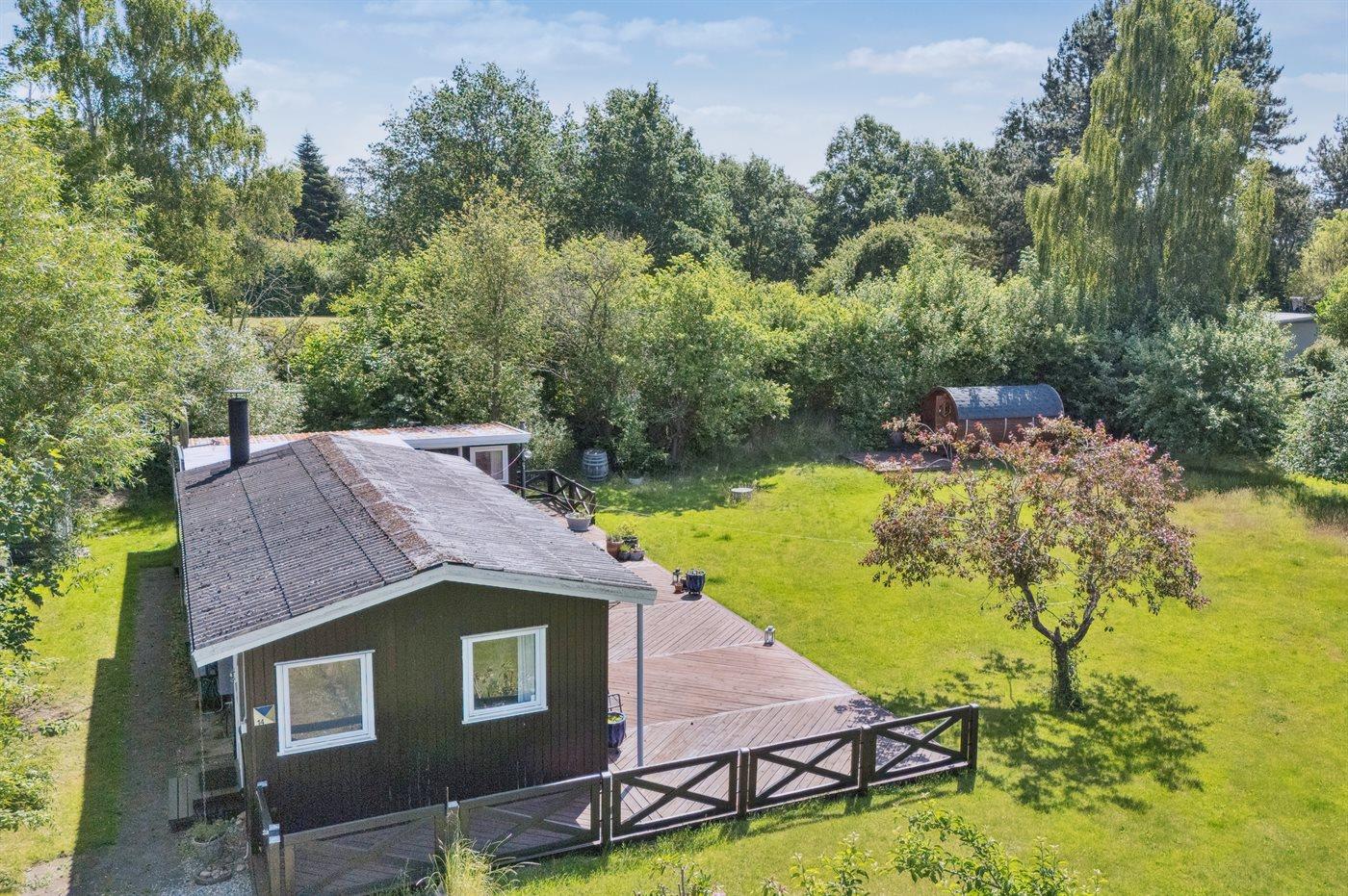 Hyggeligt sommerhus i rolige Kaldred med stor terrasse, naturgrund og nærhed til Vesterlyng Strand.