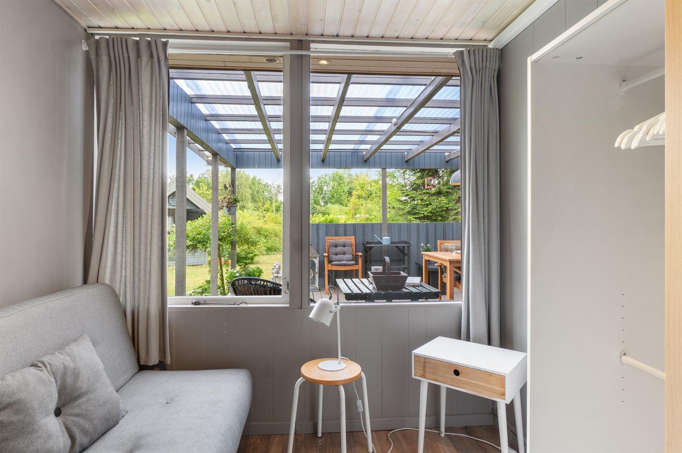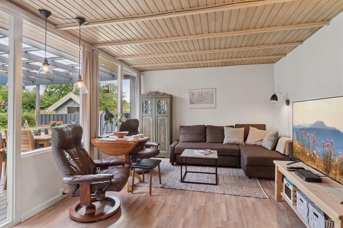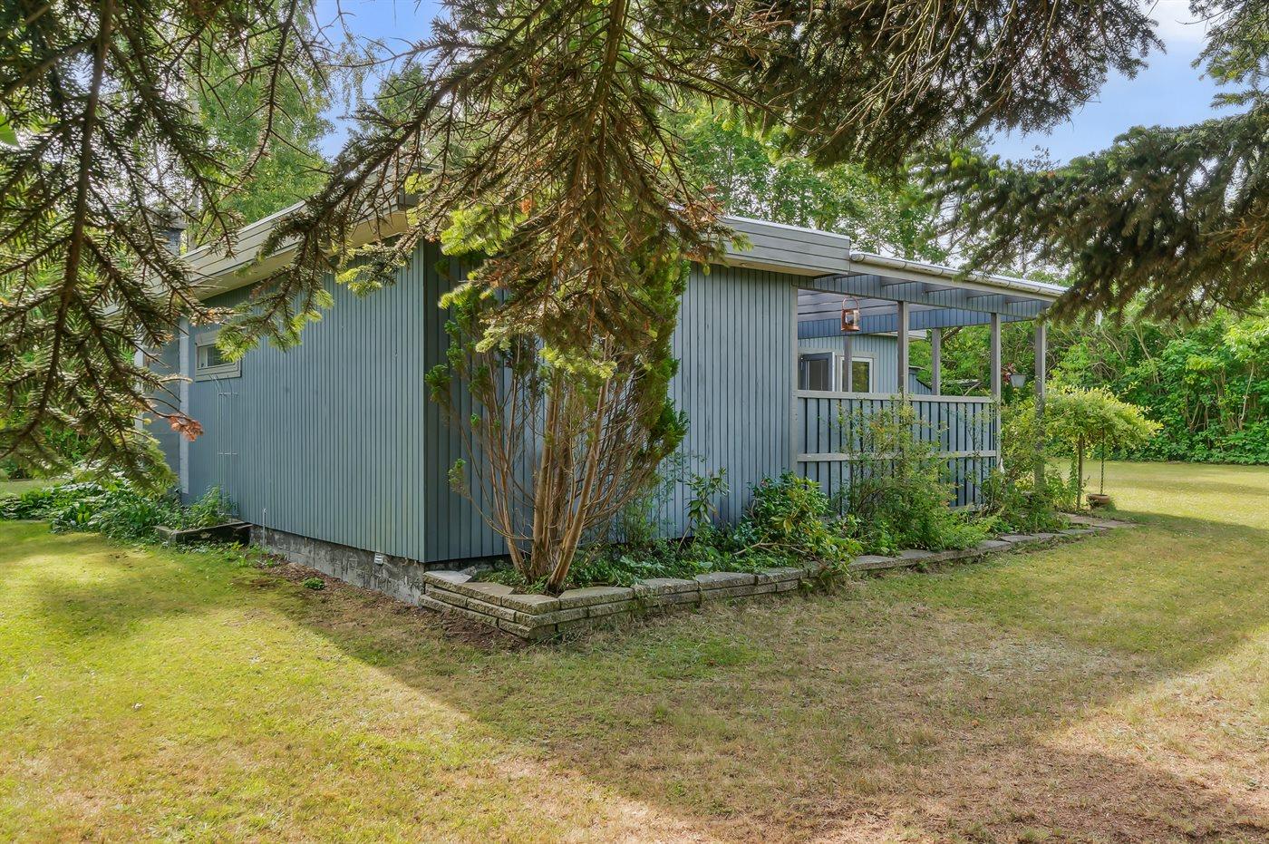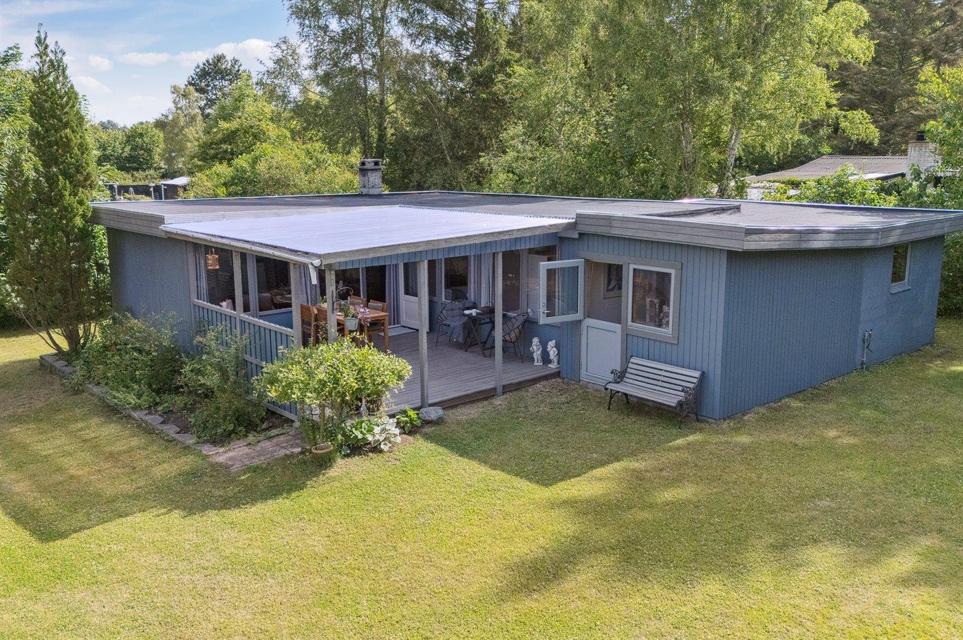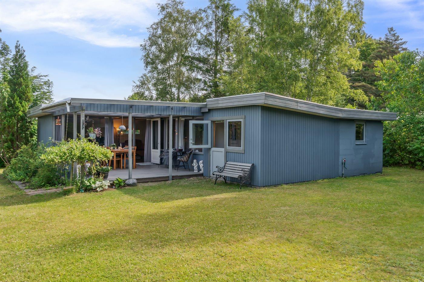 Hyggeligt sommerhus med overdækket terrasse nær Vesterlyng Strand og fredet natur i Eskebjerg.