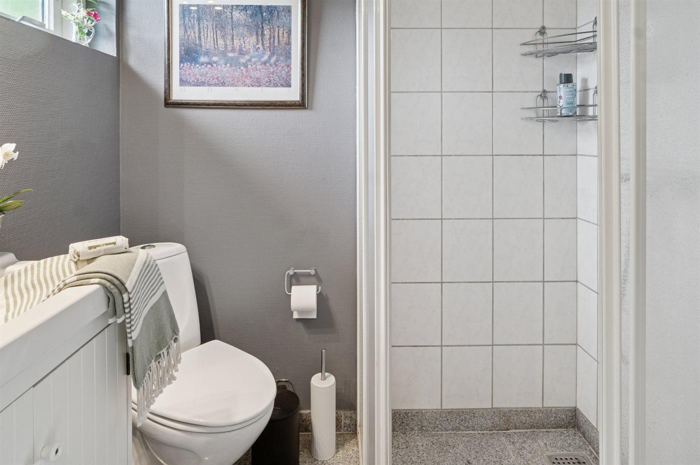 Der er 1 badeværelse med bruseniche og 1 toilet.. Der er gulvvarme på 1 badeværelse.