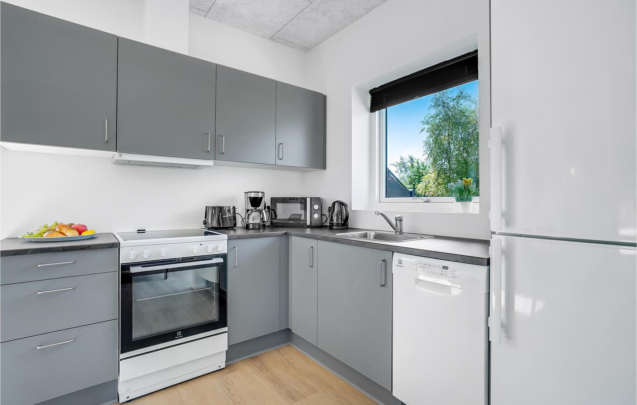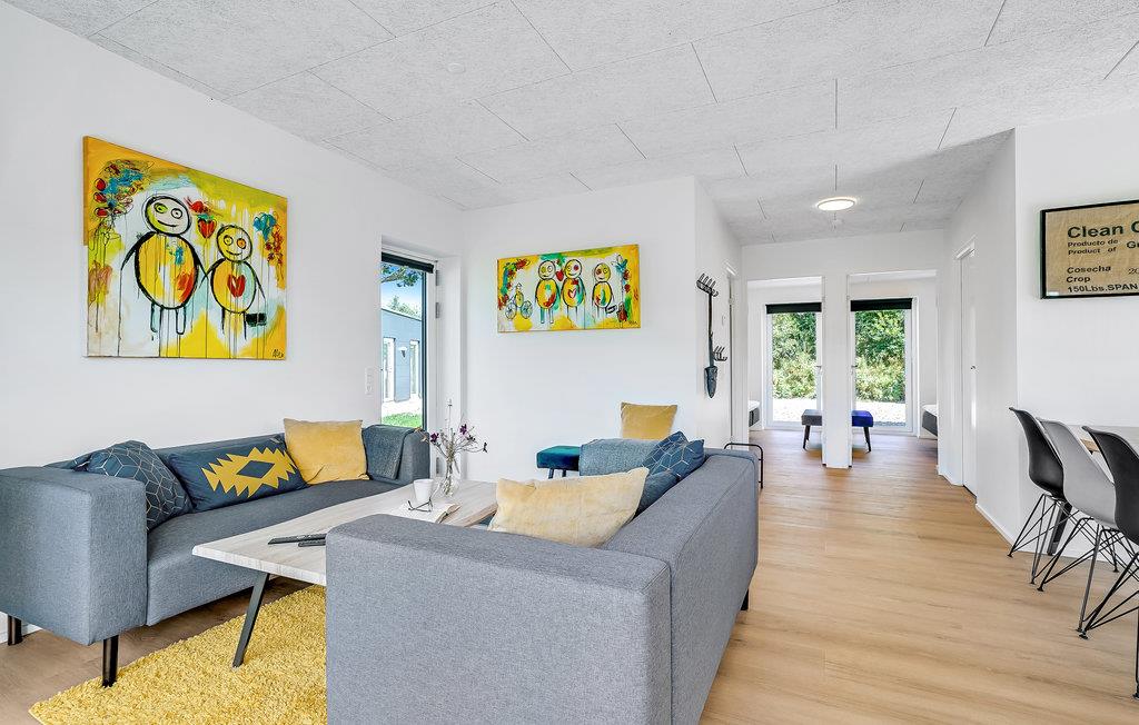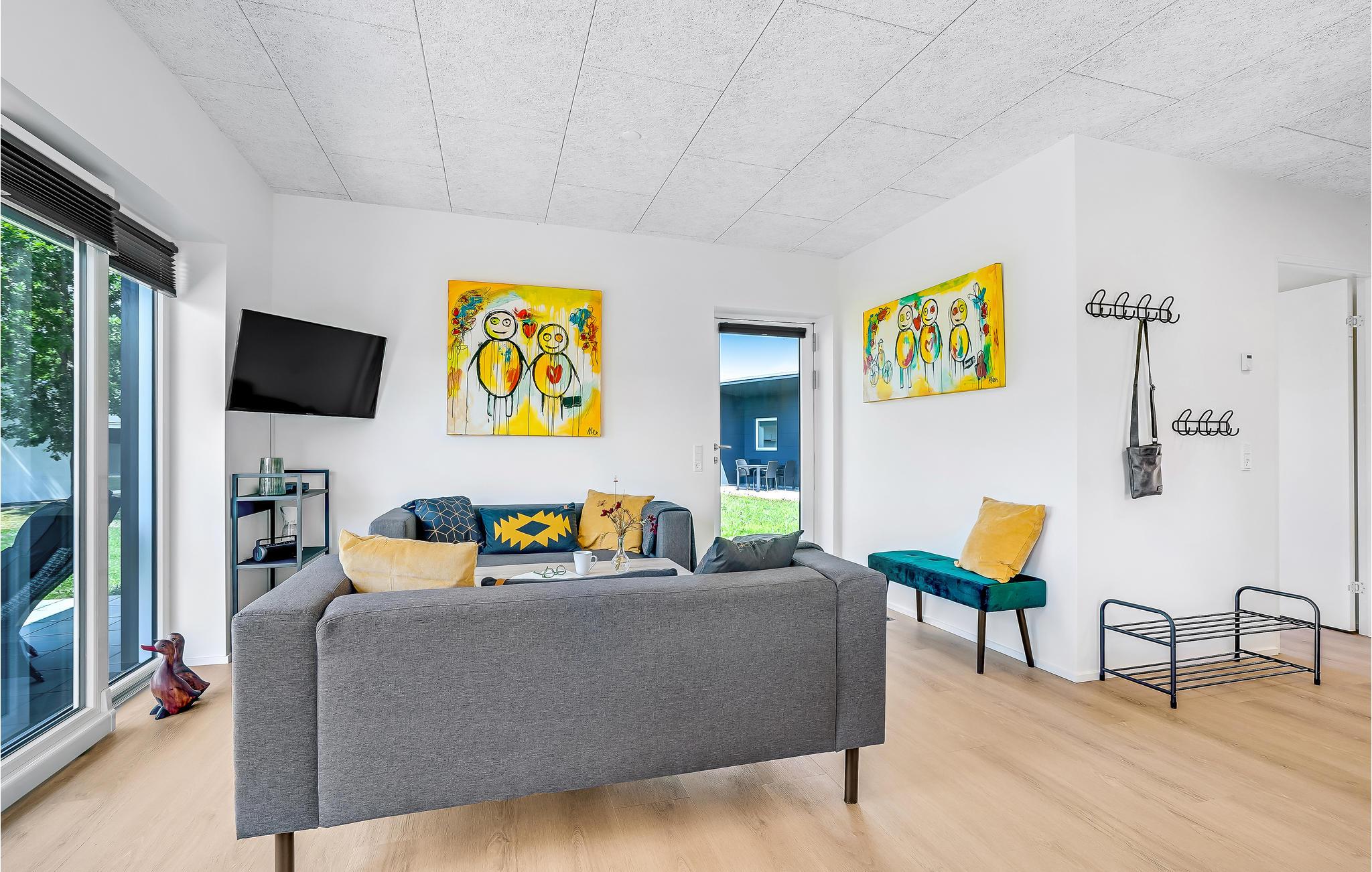 Velkommen i dette indbydende, lyst indrettede hus, der byder indenfor til en hyggelig familieferie. Køkkenet og stuen er åbent, og herfra har I direkte adgang til terrassen.