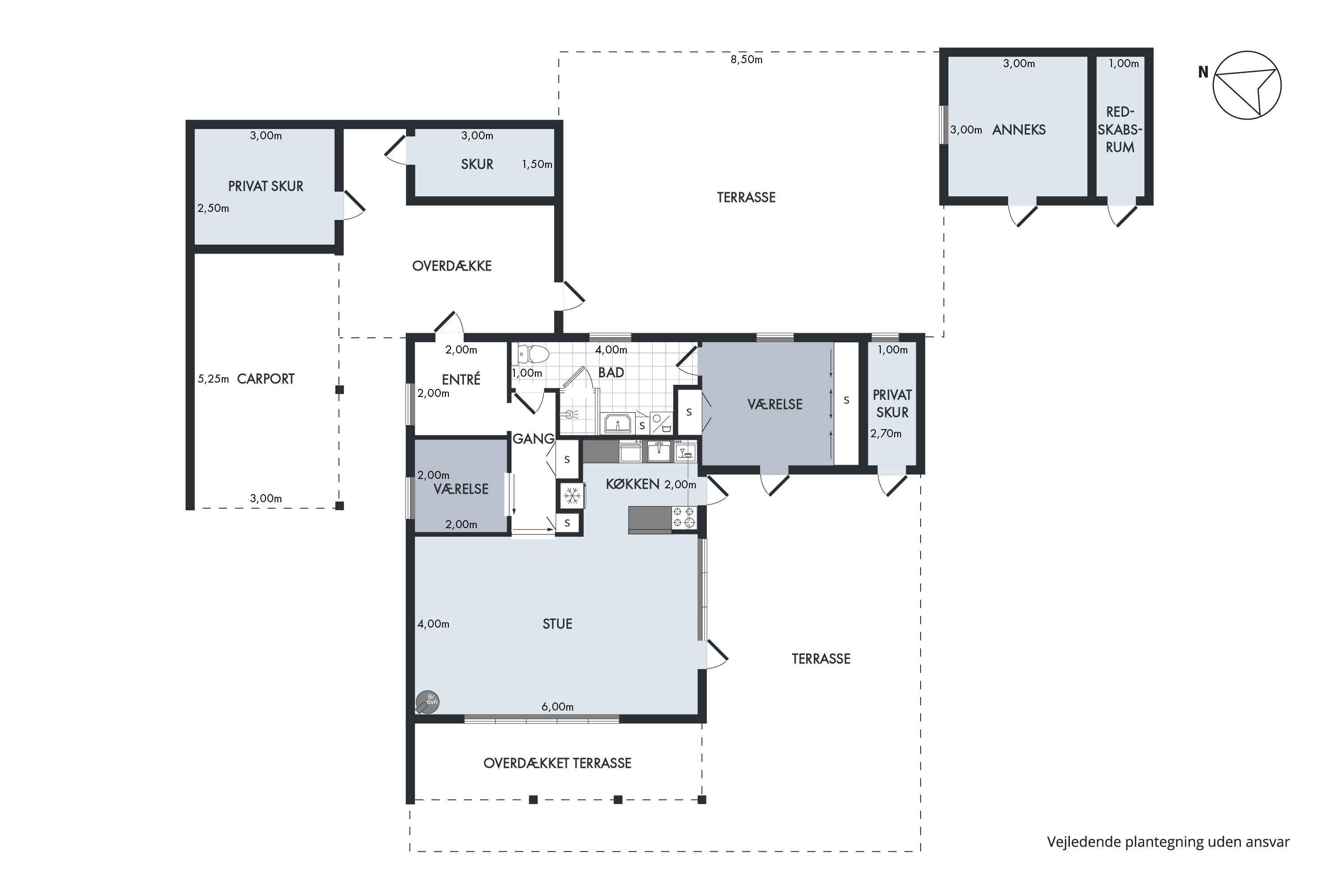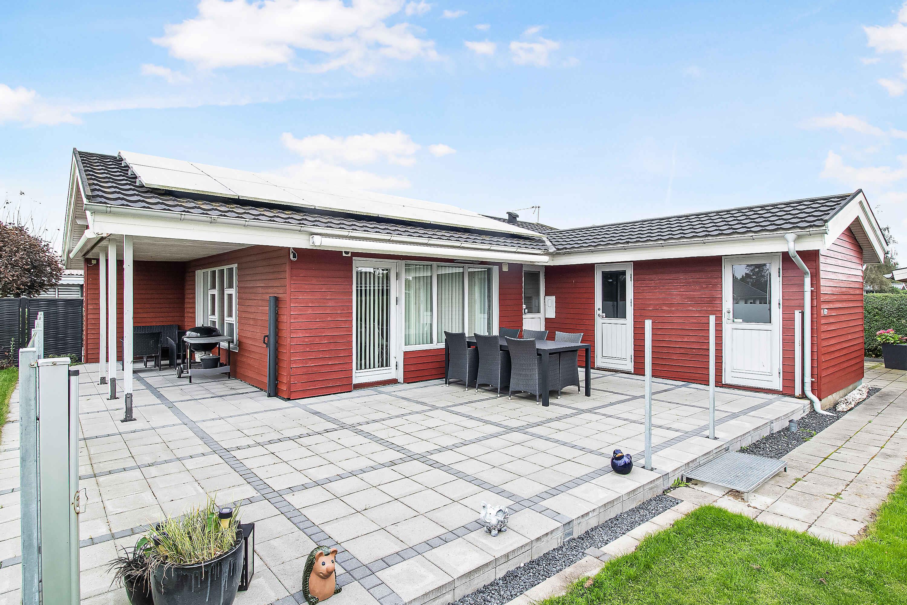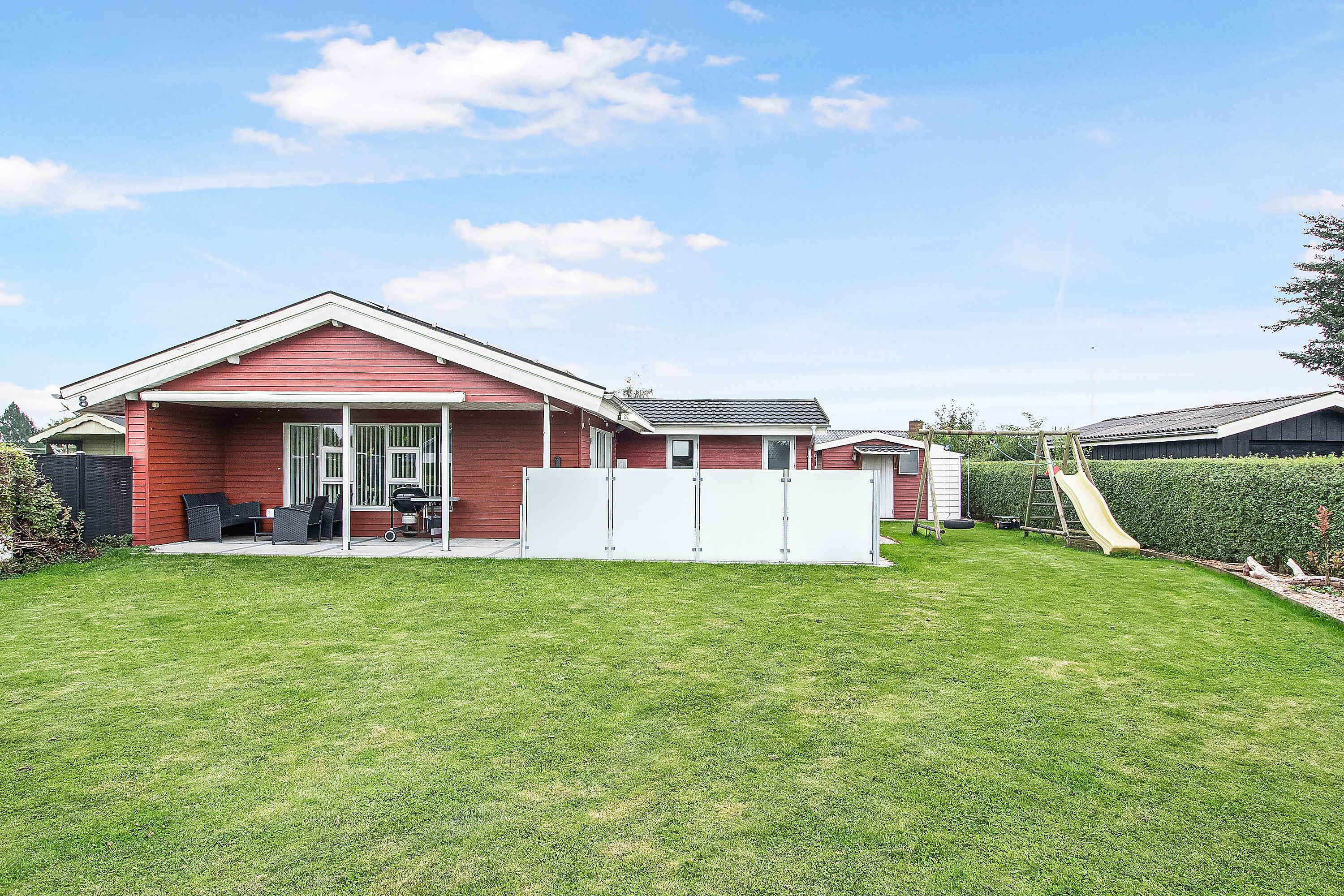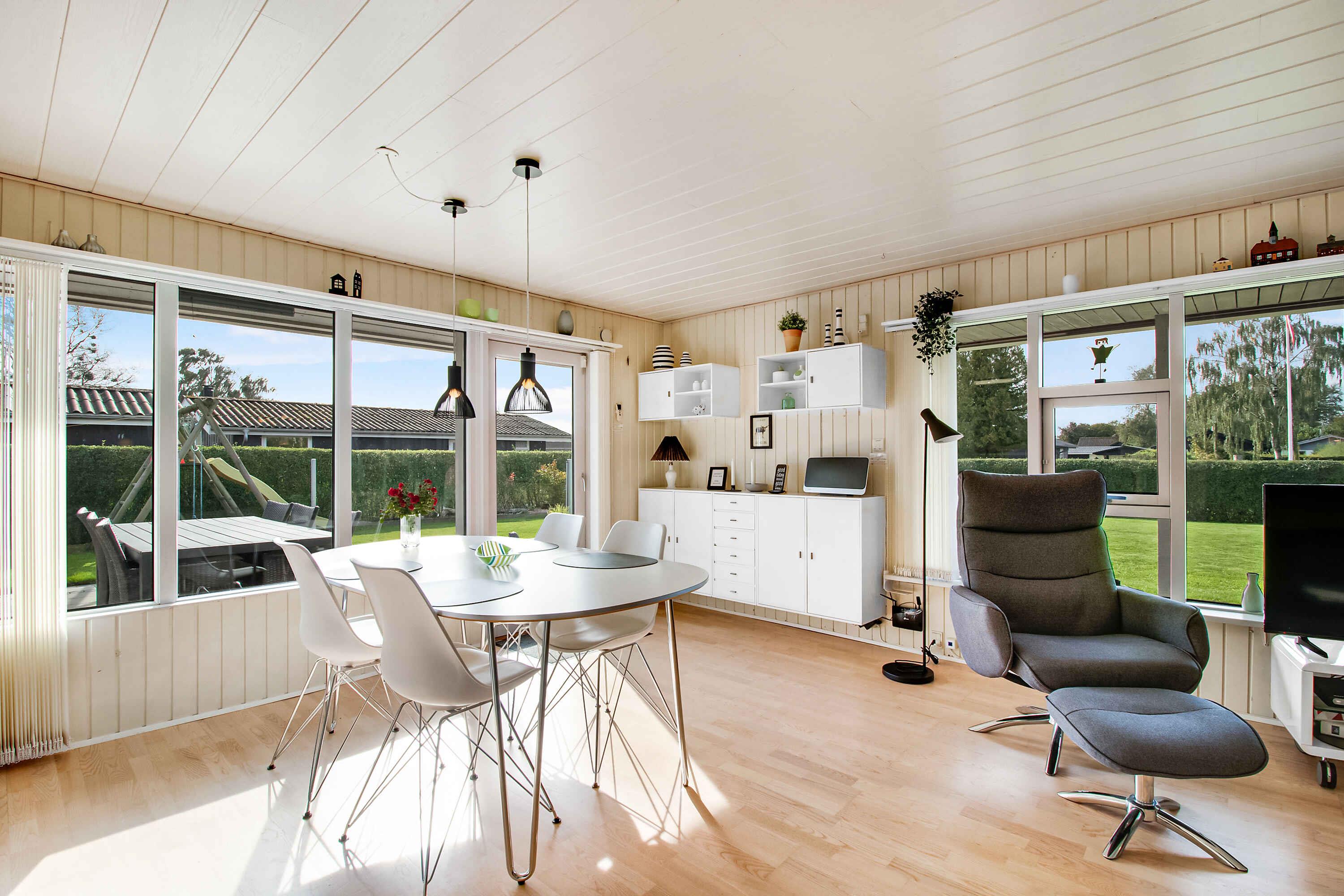 Lyst og velindrettet fritidsbolig med dejlige store terrasser på tre sider af huset. Det er beliggende i rolige omgivelser i fuldt udbygget sommerhusområde tæt på dejlig badestand og indkøbsmuligheder. Huset er indrettet med i alt 6 sovepladser