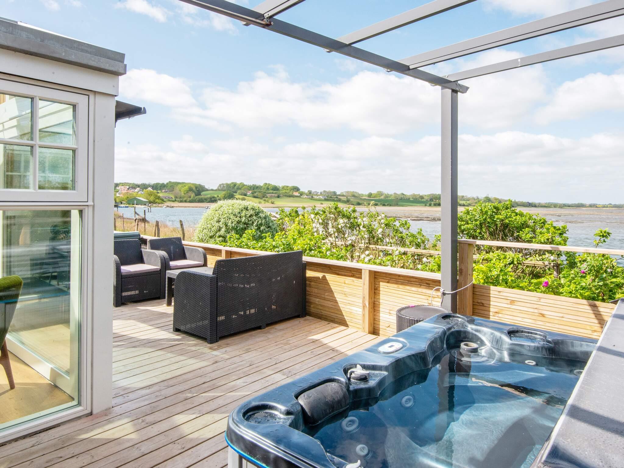 Feriehus med en storslået udsigt over vandet og en skøn terrasse samt udendørs spabad til afslappende timer. Her kan du læne dig tilbage og slappe af udenfor og nyde det storslåede kystlandskab lige fra forreste række!