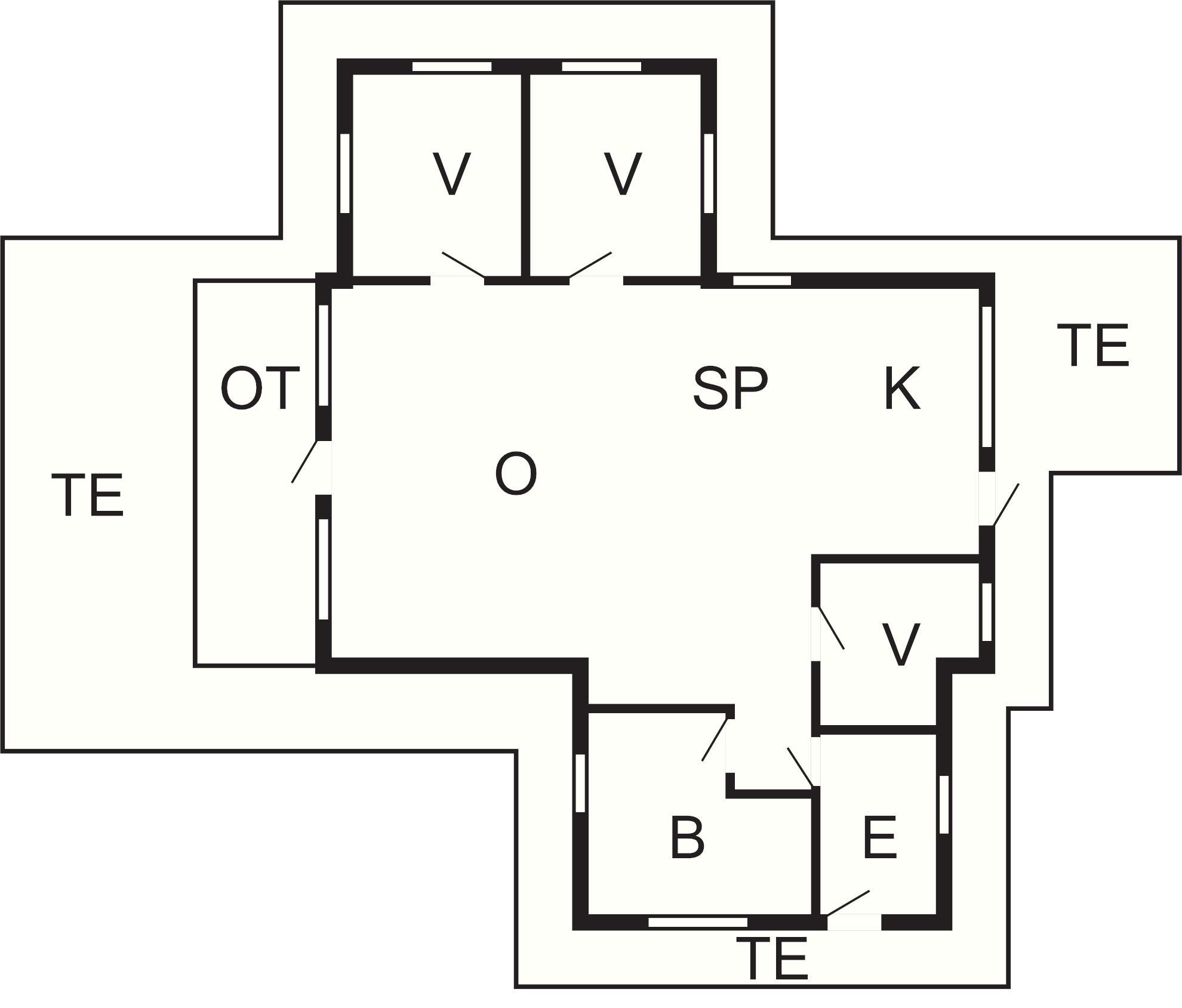 Det lyse og rummelige hus har to store soveværelser med dobbeltsenge og et værelse med køjeseng. Der er en ekstra udtræksseng under køjesengen, så der er plads til op til syv personer.