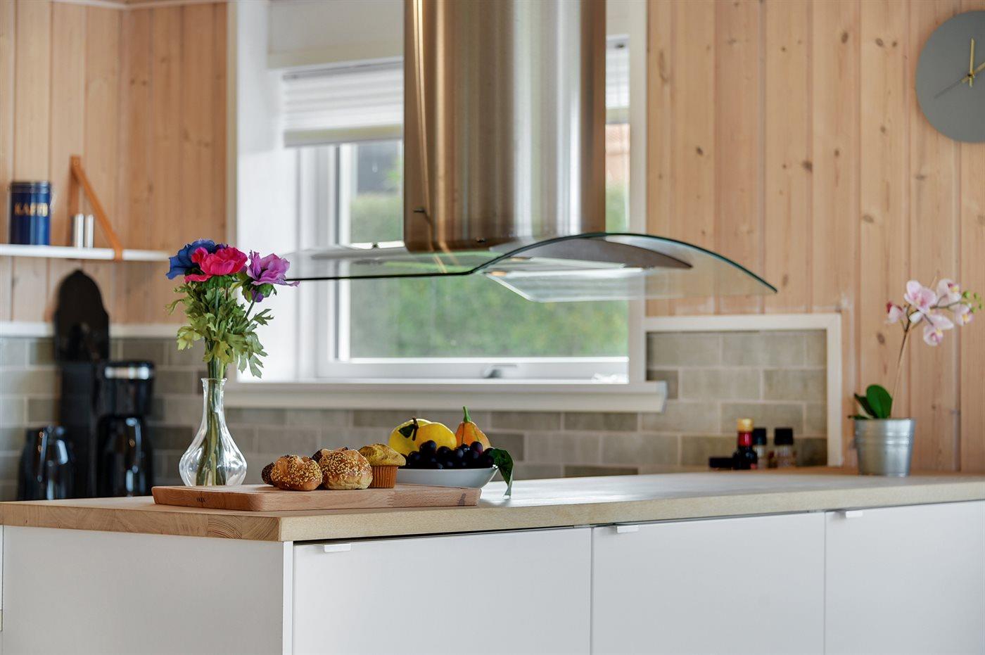 Køkkenet er udstyret med 1 køleskab. Der er 4 keramiske kogeplader, varmluftovn, mikrobølgeovn samt opvaskemaskine.