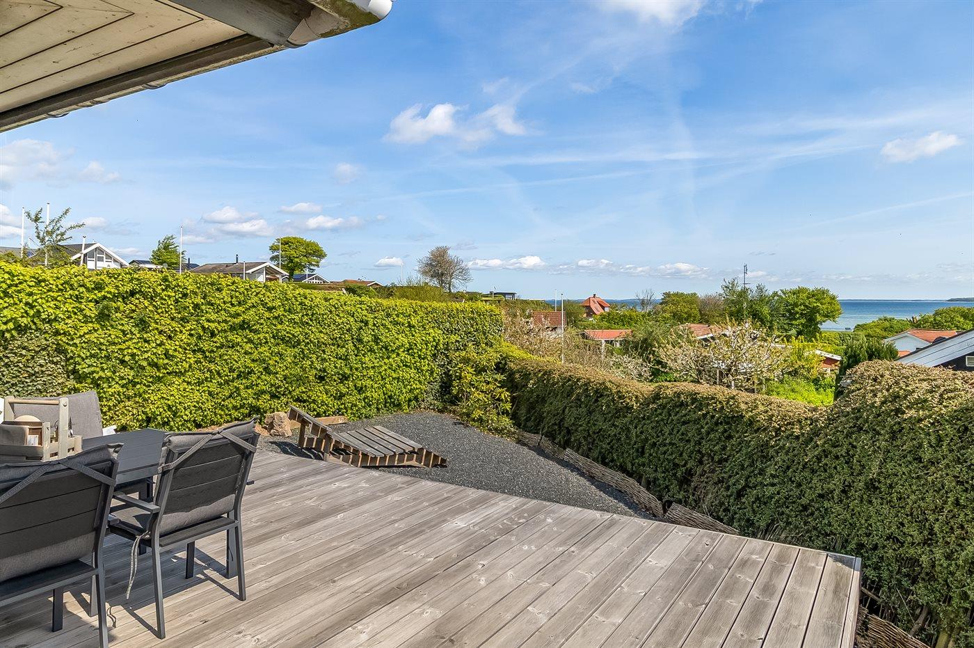 Sommerhus med fantastisk havudsigt, terrasse, kano og brændeovn tæt på vandet i Hejlsminde.