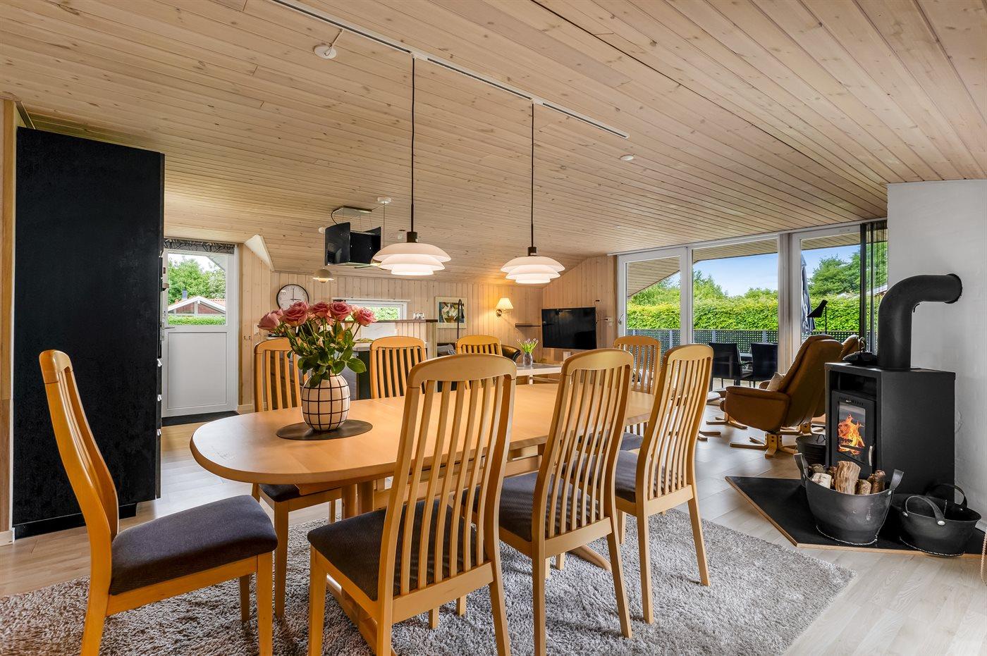Sommerhuset egner sig til 8 personer samt 1 barn op til 3 år. Ferieboligen er på 102 m² og er bygget i 1996. Det er tilladt at medbringe 2 husdyr. Ferieboligen er udstyret med energibesparende luft til luft varmepumpe. Ferieboligen har vaskemaskine. Tørretumbler. Frysekapacitet på 60 liter. Der er desuden brændeovn. Til de små er der 1 stk. barnestol.