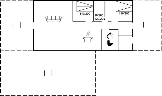 Der er i alt 3 soveværelser. Sovepladserne fordeler sig på: 4 sovepladser i dobbeltsenge. 2 sovepladser i køjeseng.