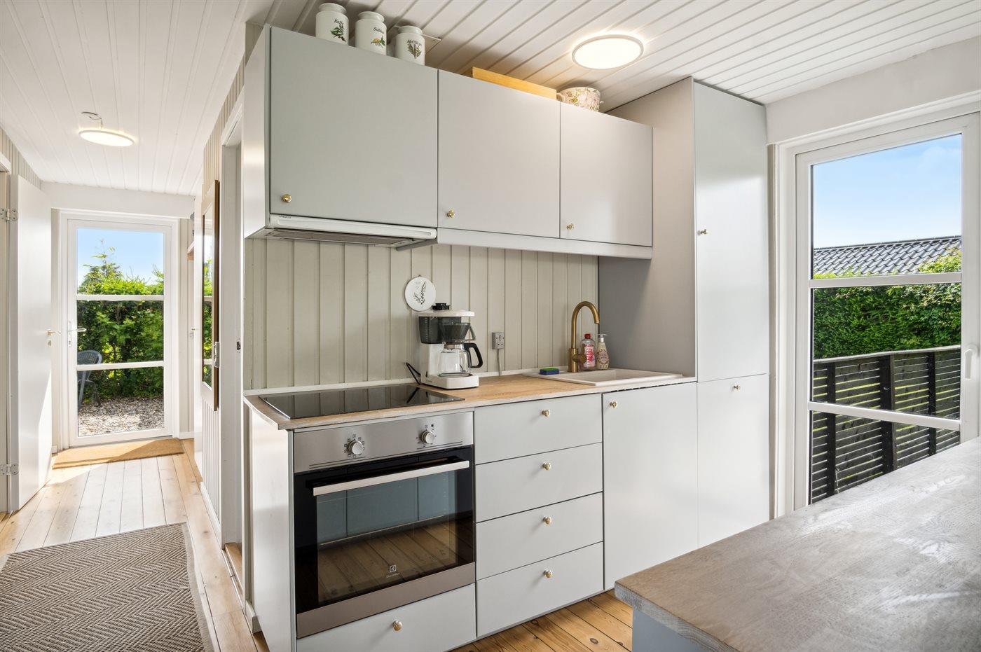 Køkkenet er udstyret med 1 køleskab. Der er 4 induktionskogeplader, varmluftovn, mikrobølgeovn samt opvaskemaskine.