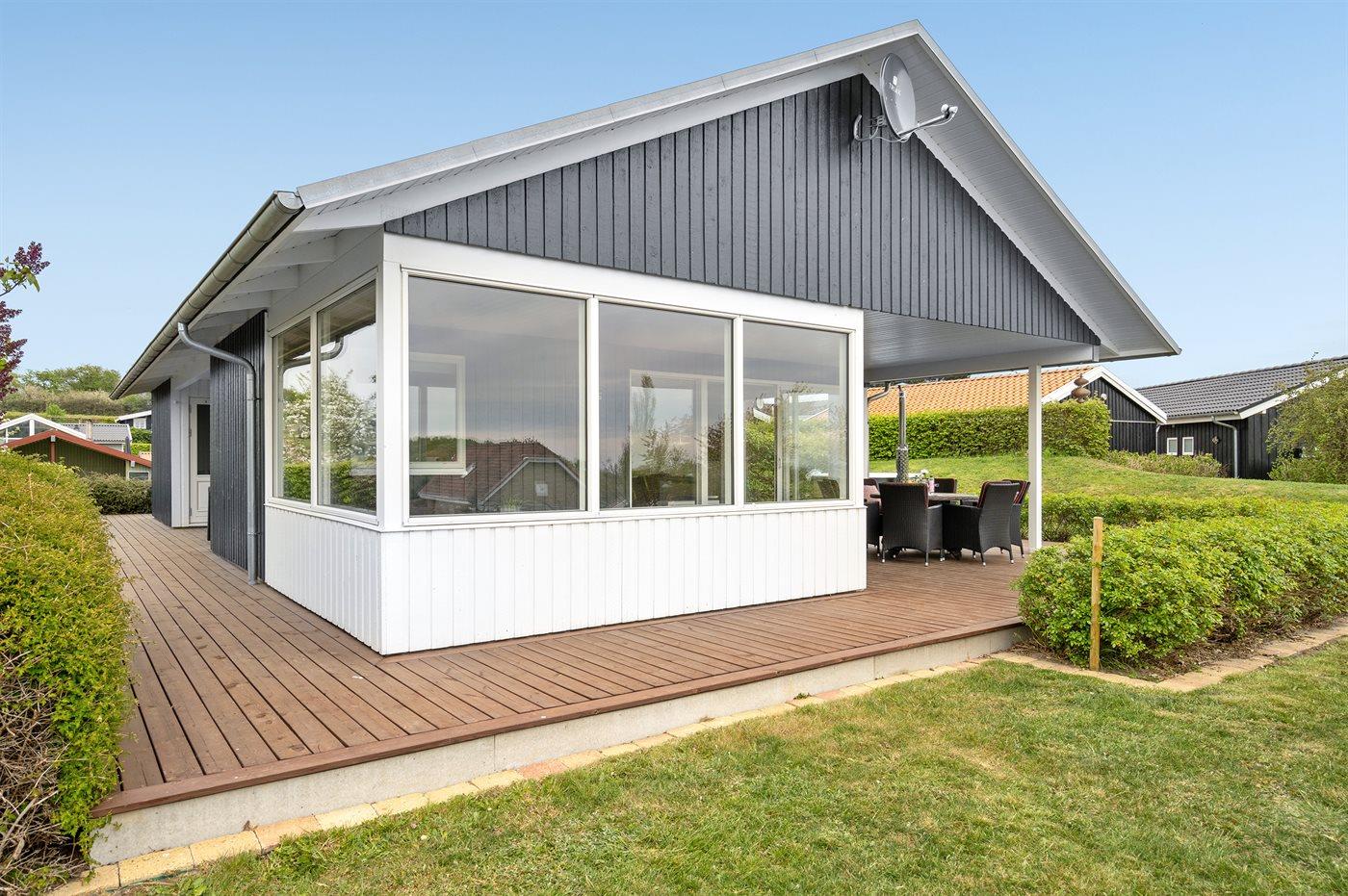 Ferieboligen er beliggende på en 800 m² stor havegrund. Der er 700 m til havet. Nærmeste forretning er beliggende i en afstand af 2000 m. Til ferieboligen hører 40 m² terrasseareal. Desuden er der 35 m² overdækket terrasse. Heraf i alt 12 m² lukket terrasse. Der er carport til rådighed. Parkering ved ferieboligen.