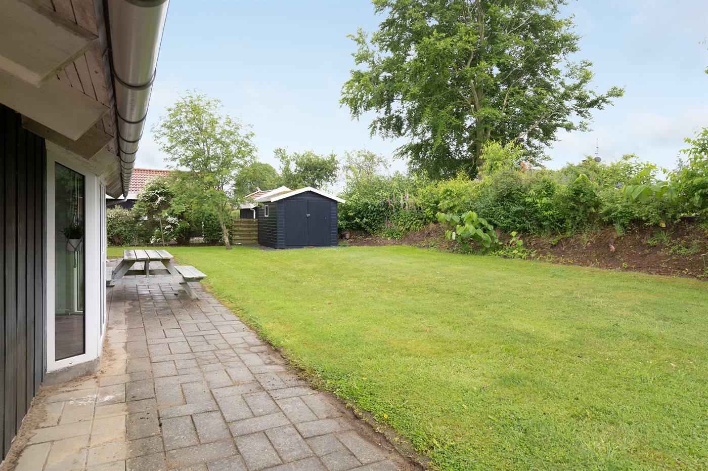 Ferieboligen er beliggende på en 685 m² stor havegrund. Der er 750 m til havet. Nærmeste forretning er beliggende i en afstand af 1000 m. Til ferieboligen hører 80 m² terrasseareal. Desuden er der 14 m² overdækket terrasse. Der er redskabsrum. Der er carport til rådighed. Parkering ved ferieboligen.