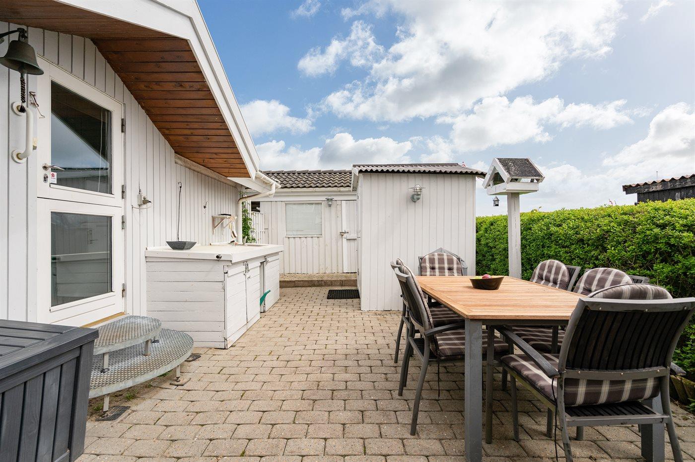 Ferieboligen er beliggende på en 580 m² stor Der er 150 m til havet. Nærmeste forretning er beliggende i en afstand af 3000 m. Til ferieboligen hører 30 m² terrasseareal. Desuden er der 10 m² overdækket terrasse. Bålsted. Grill til rådighed. Der er carport til rådighed. Parkering ved ferieboligen.