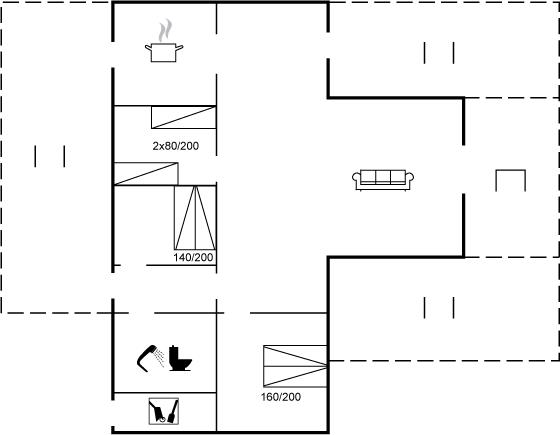 Der er i alt 3 soveværelser. Sovepladserne fordeler sig på: 4 sovepladser i dobbeltsenge. 2 sovepladser i enkeltsenge. Derudover er der 1 stk. barneseng.