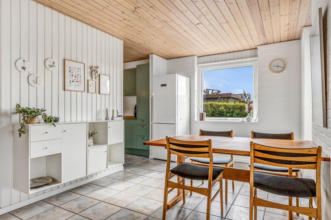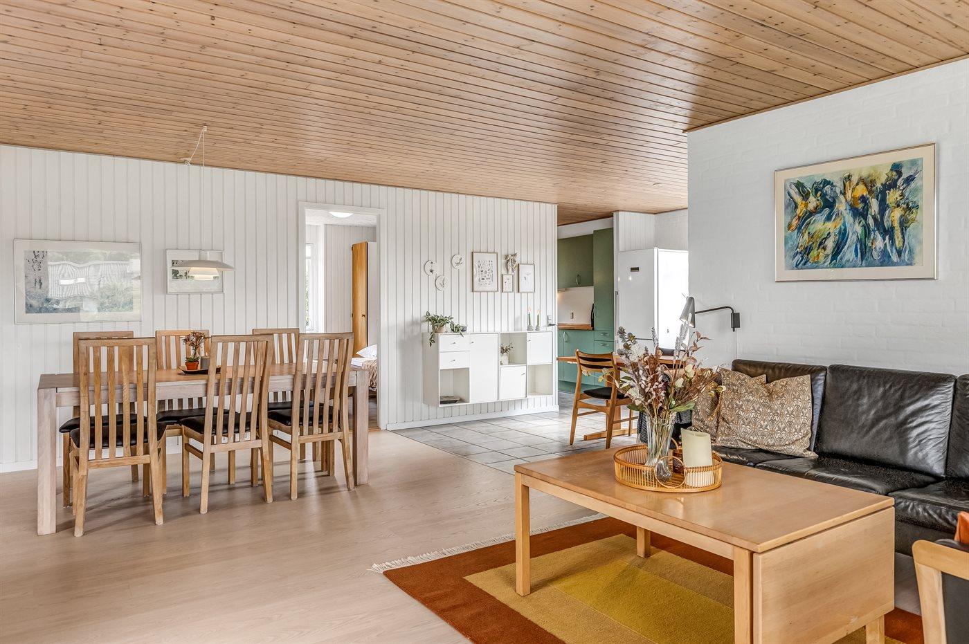 Ikke langt fra den dejlige badestrand ligger dette pæne sommerhus, som er delvist moderniseret i 2024/2025. Fra grunden er der et lille kig til havet.