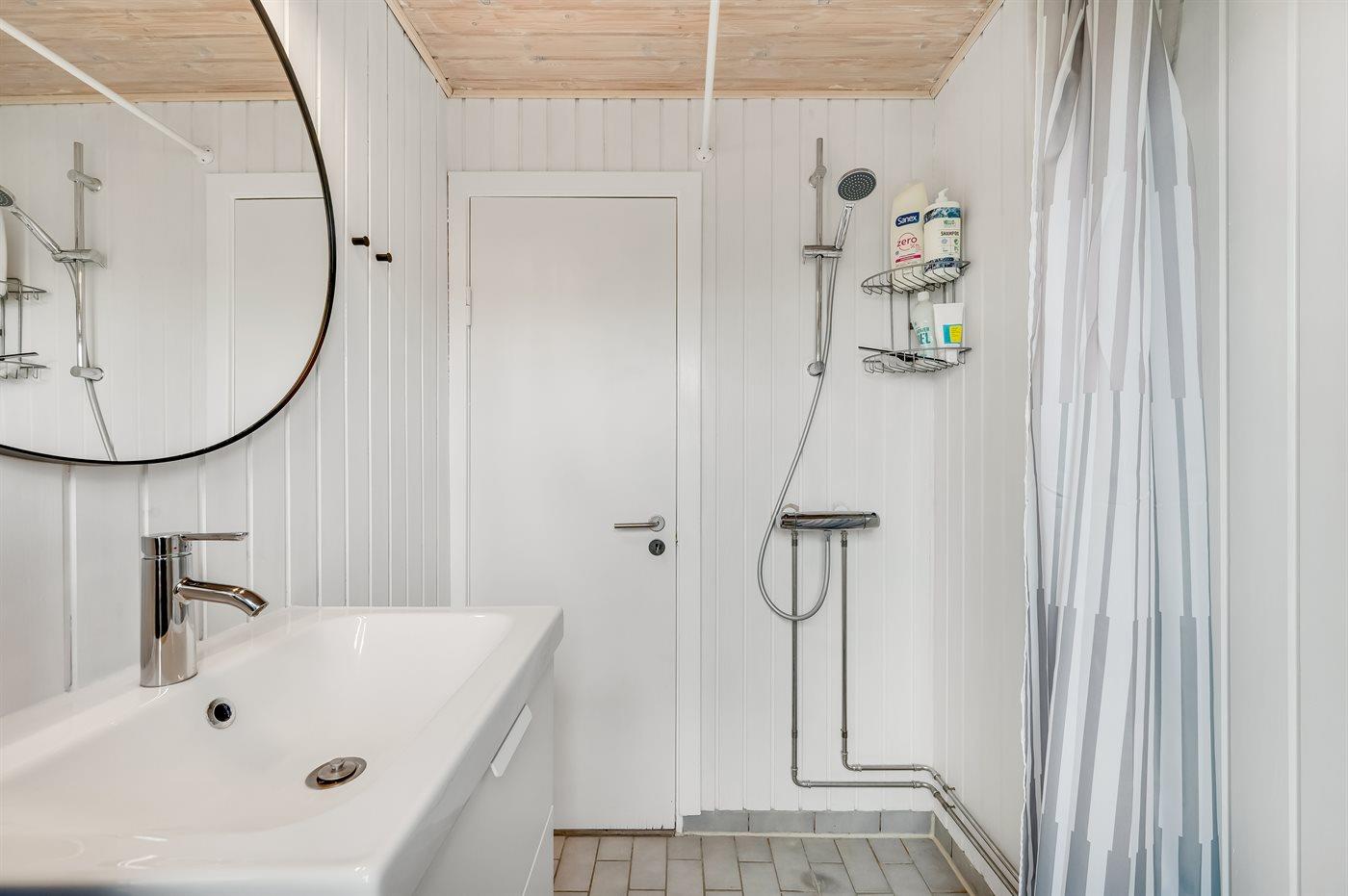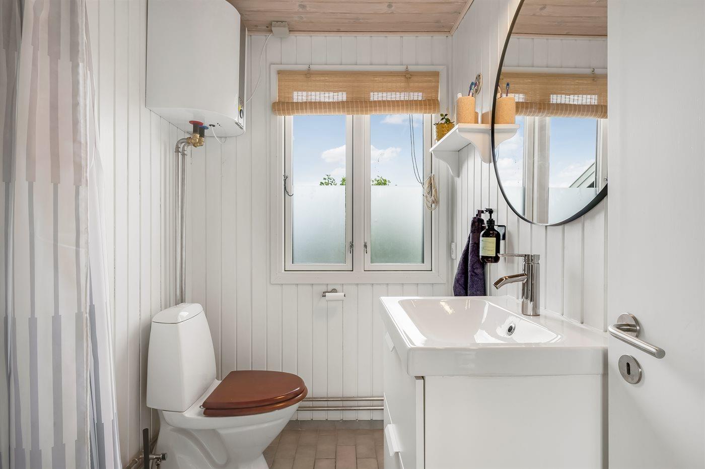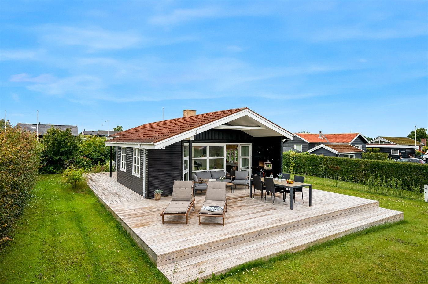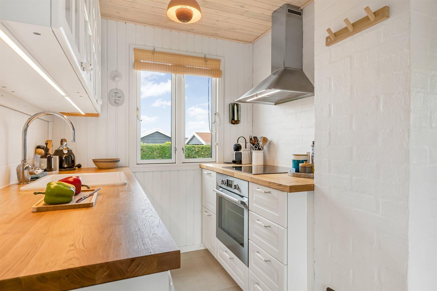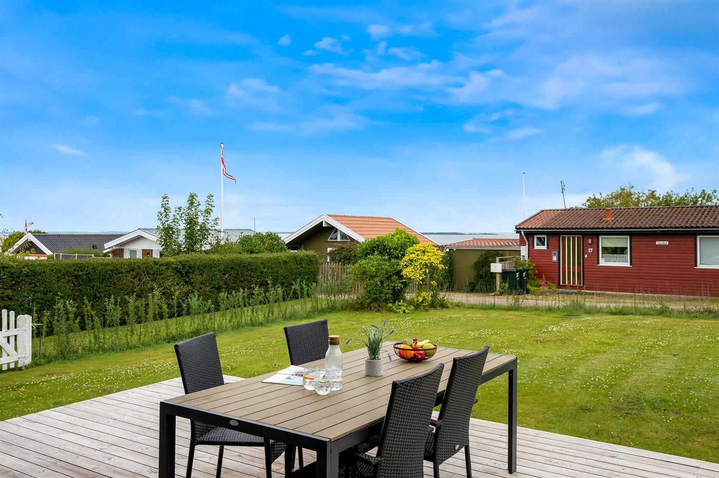 Med dette sommerhus får I en dejlig udsigt til vandet, som kan nydes både fra stuen og den store terrasse. Den hyggelige stue indbyder til afslapning, og herfra kan I følge havets skiftende stemninger, hvad enten I sidder ved spisebordet eller slænger jer i sofaen.