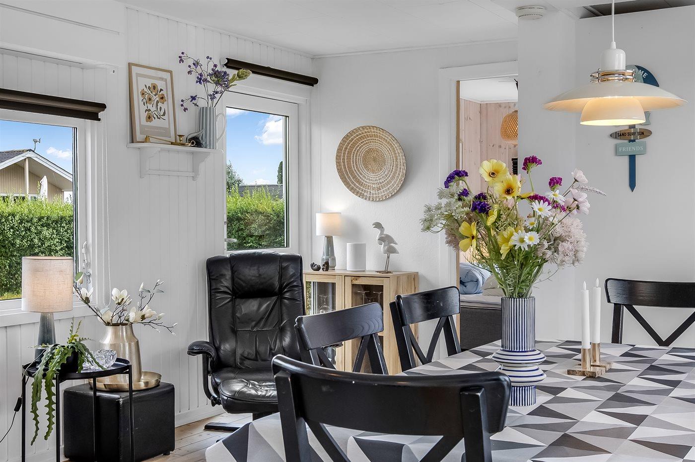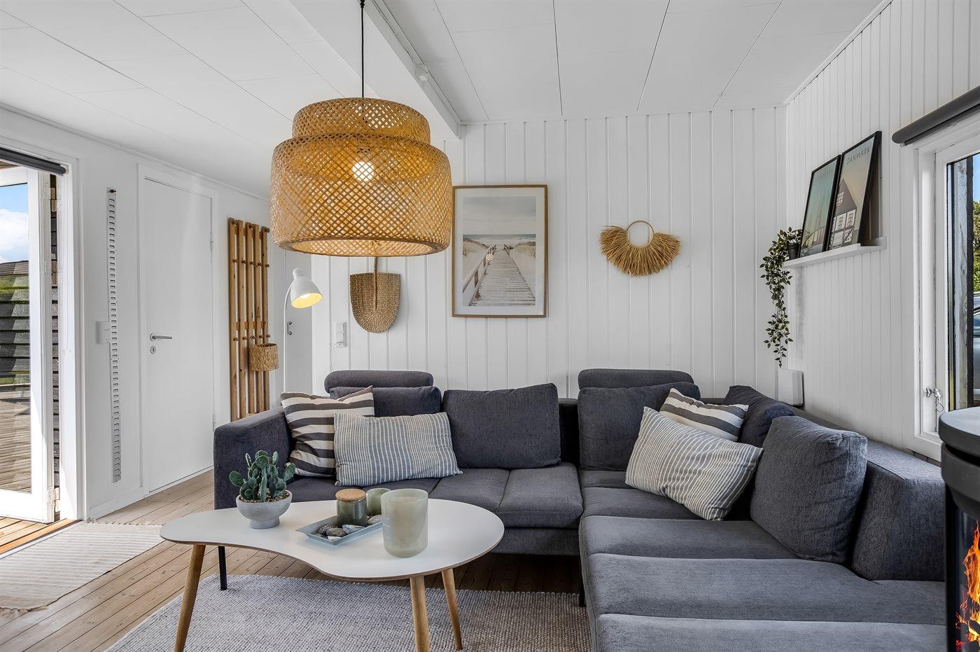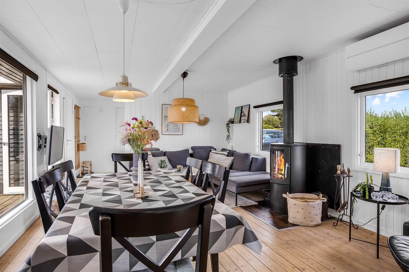Sommerhuset er i 2024 blevet delvist nyistandsat og byder på en hyggelig stue med stor spiseplads samt et veludstyret køkken med fuld hvidevarepakke, herunder køle-fryseskab og opvaskemaskine. Indvendigt er der tre soveværelser, hvoraf to har dobbeltseng og ét er indrettet med køjeseng. Det tilhørende store anneks rummer også en dobbeltseng, hvilket giver ekstra fleksibilitet for overnatning.