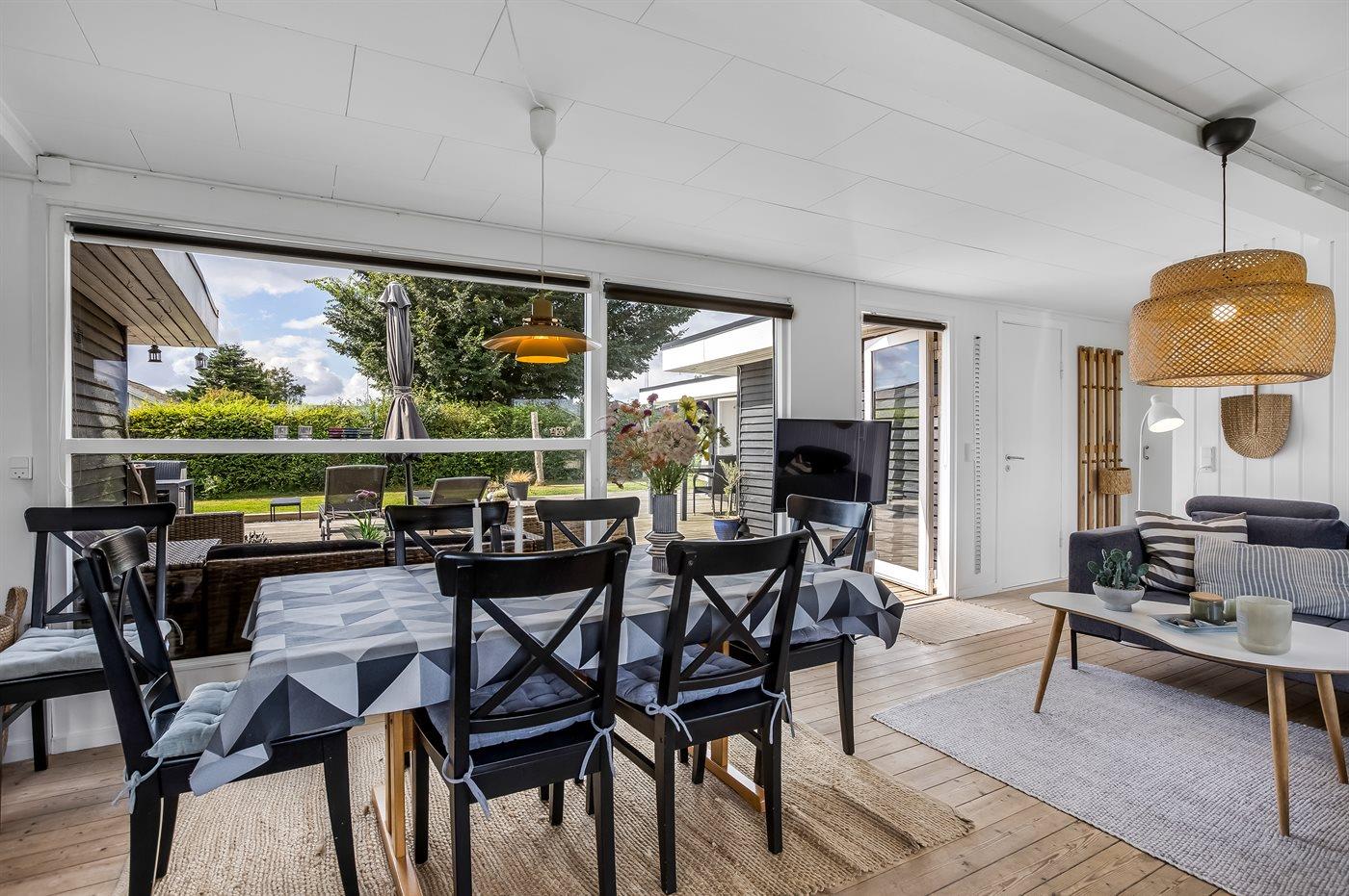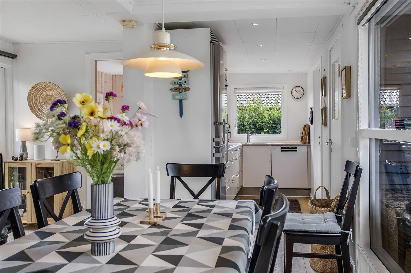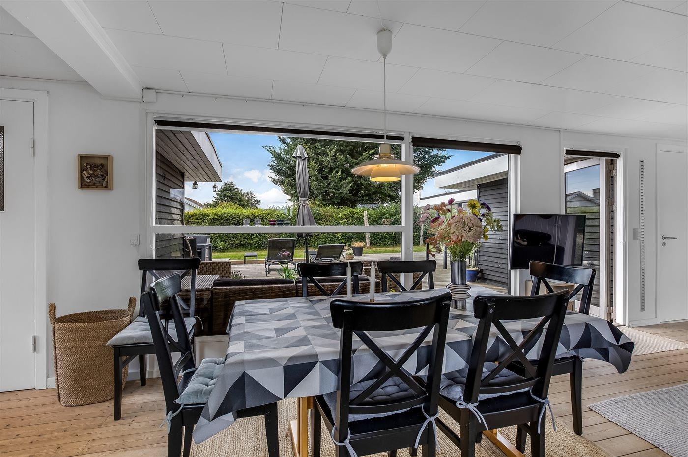 Sommerhuset er i 2024 blevet delvist nyistandsat og byder på en hyggelig stue med stor spiseplads samt et veludstyret køkken med fuld hvidevarepakke, herunder køle-fryseskab og opvaskemaskine. Indvendigt er der tre soveværelser, hvoraf to har dobbeltseng og ét er indrettet med køjeseng. Det tilhørende store anneks rummer også en dobbeltseng, hvilket giver ekstra fleksibilitet for overnatning.