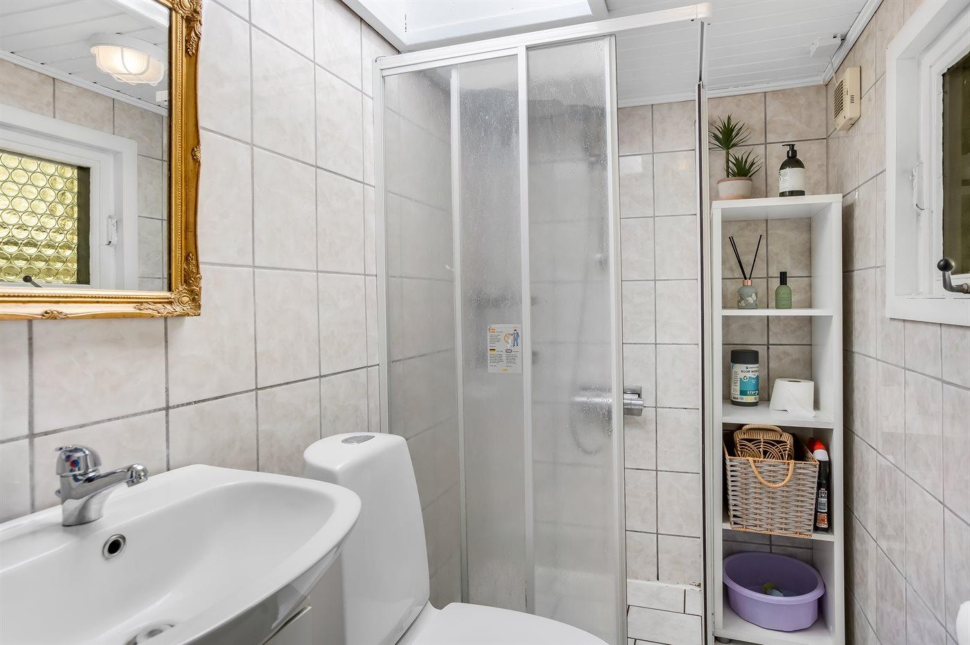 Der er 1 badeværelse med bruseniche og 1 toilet.. Der er gulvvarme på 1 badeværelse.