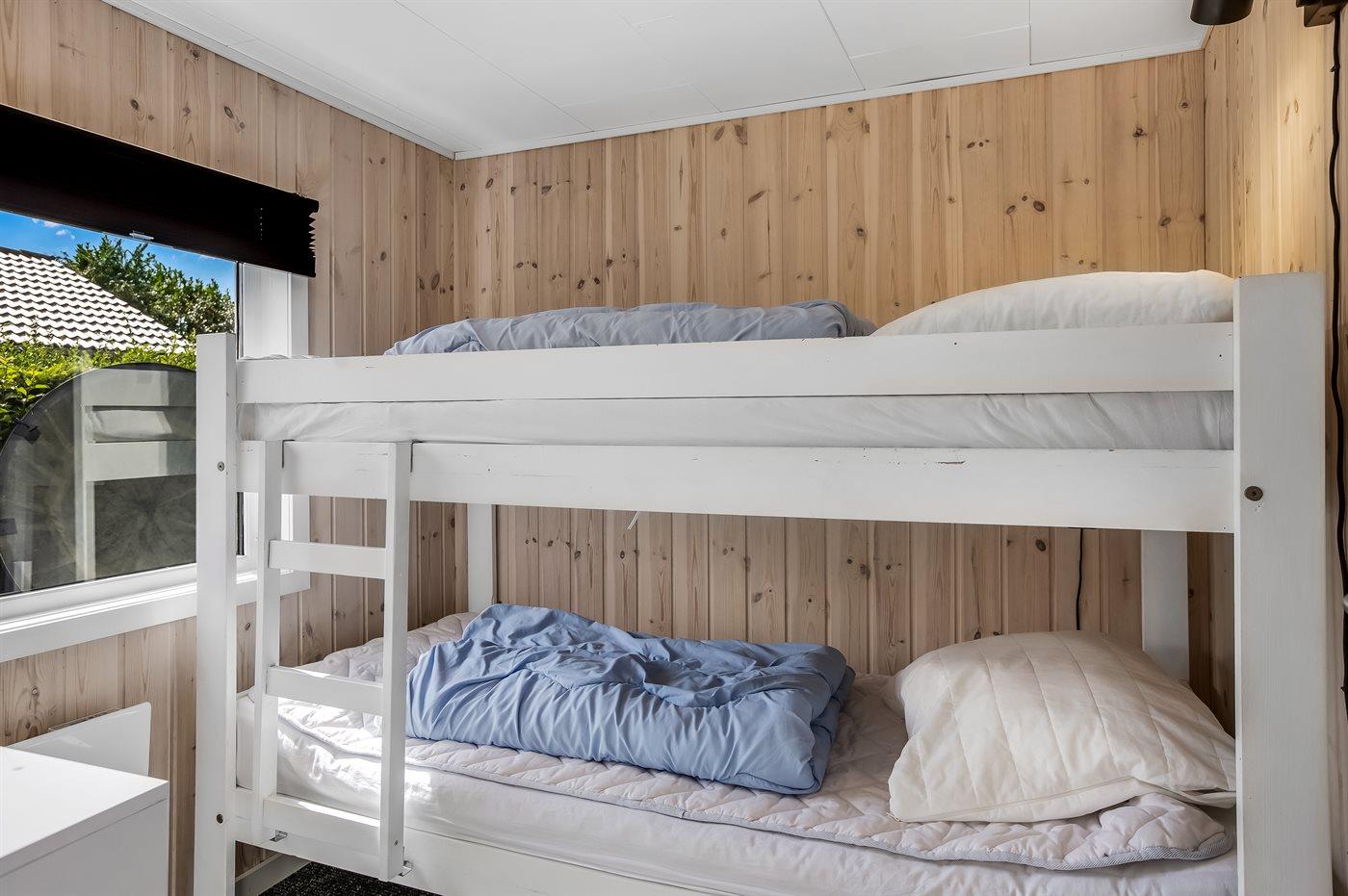 Der er i alt 4 soveværelser. Sovepladserne fordeler sig på: 4 sovepladser i dobbeltsenge. 2 sovepladser i køjeseng. 2 sovepladser i alkove. 2 af disse sovepladser befinder sig i anneks. Derudover er der 1 stk. barneseng.