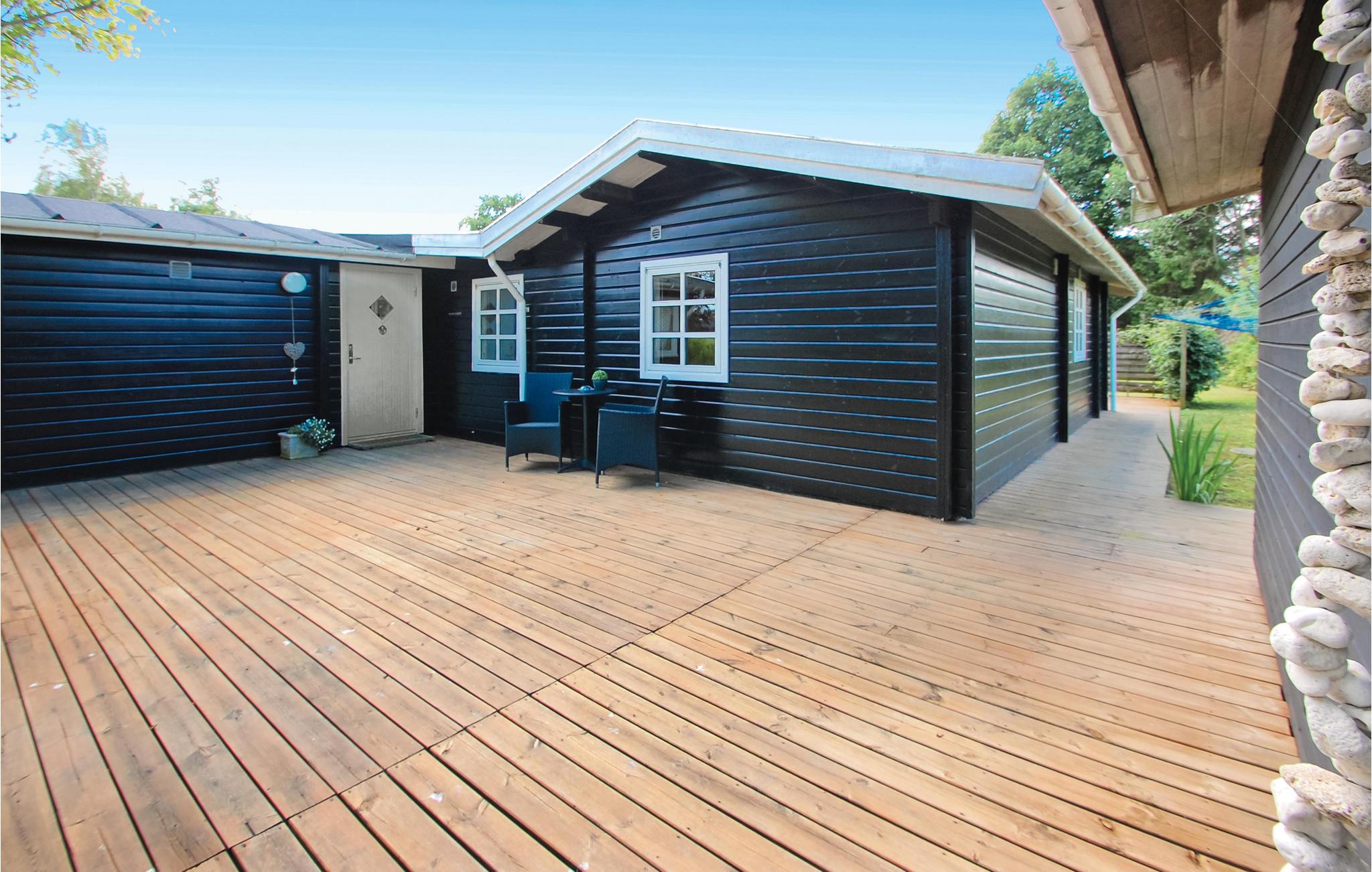 Hyggeligt feriehus af træ. Det er bygget i god kvalitet, indrettet med pæne og moderne møbler overalt og rummer et flot køkken og badeværelse. Huset ligger på en anlagt havegrund med randbevoksning i et stort feriehusområde med mange muligheder for vandreture i de omkringliggende stisystemer. Der er kun få hundrede meter til boldbane og legeplads. Fra Kolding har I kun ca. en halv times kørsel til Legoland og Legohouse, som absolut er en dagstur værd, hvis der er børn og unge med på ferien. I kan også besøge Koldinghus, der engang var landets kongeslot - nu rammer om utallige interessante udstillinger, der skifter med jævne mellemrum.