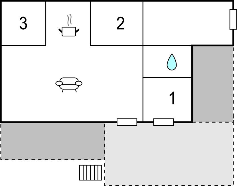 Dejlig stor terrasse med udsigt til vandet. Udsigten kan ligeledes nydes fra stuen, da feriehuset ligger højt placeret for enden af en blind vej, i rolige omgivelser i udkanten af et stort feriehusområde. Her vil I kunne nyde jeres ferie i rolige omgivelser. Huset er billigt at opvarme, da her er brændeovn. Køkken og stue ligger i åben forbindelse, og der er tre soveværelser i huset, det ene med direkte udgang til den store udsigtsterrasse. Her er tæt på vandet og havnemiljøet i Hejlsminde.
