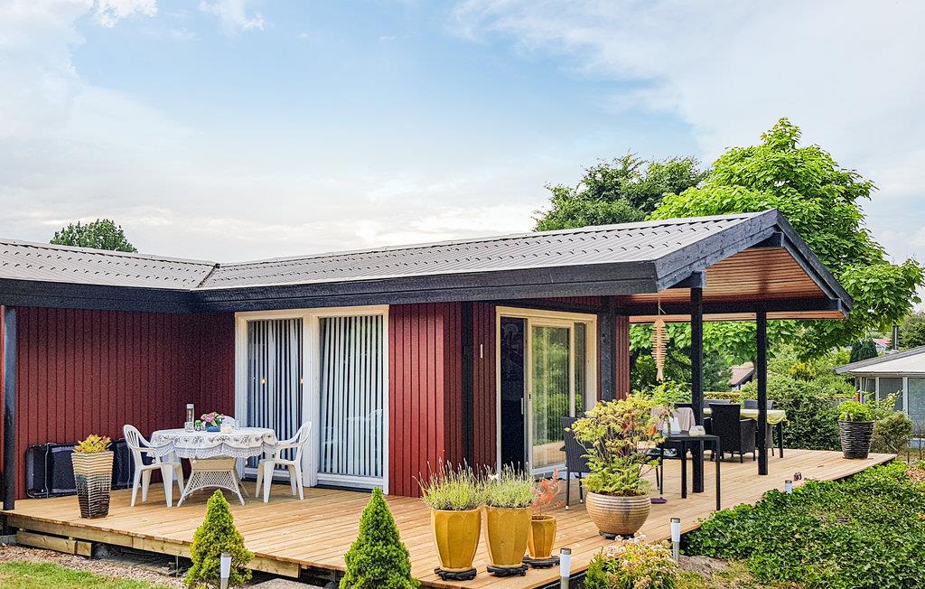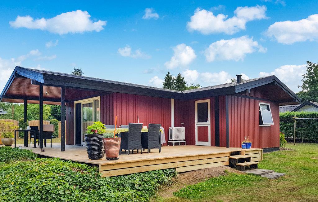 Hyggeligt sommerhus med stor terrasse, legeplads og kun 300 m til sandstrand i Hejlsminde.