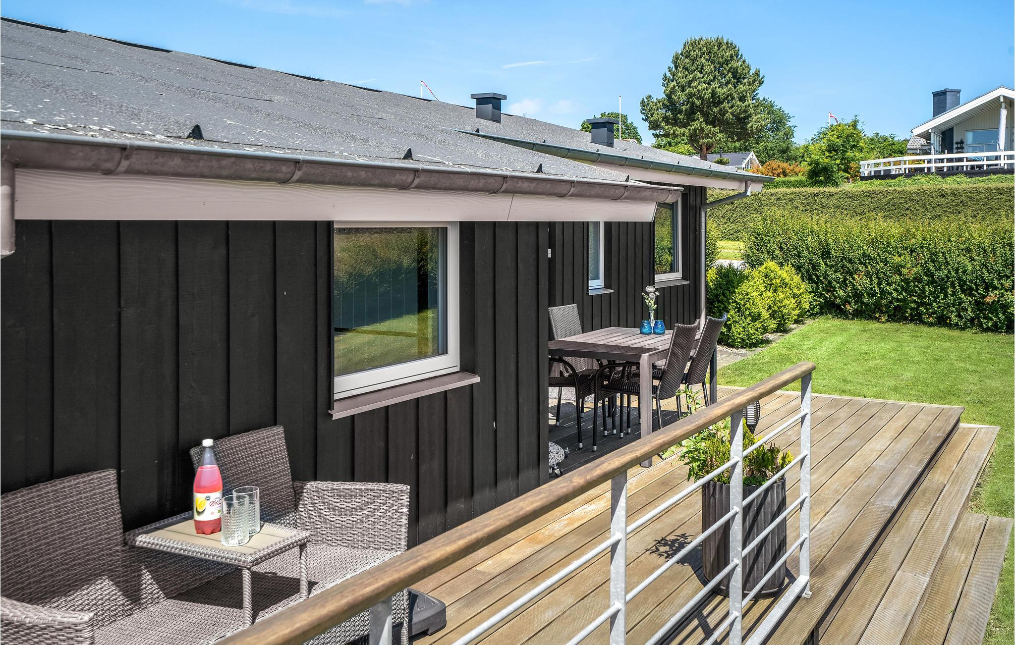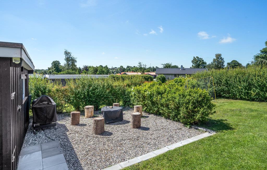 Udenfor finder børnene gode underholdningsmuligheder i form af legehus, gynge, sandkasse, volleyballnet og mere. Husets hævede terrasse er udstyret med komfortable havemøbler til solbadning og udendørsspisning, og selvfølgelig har I også en grill til rådighed, så I kan holde hyggelige grilllaftener. Ydermere er der bålplads i haven, hvis I ønsker at bage snobrød eller riste skumfiduser.