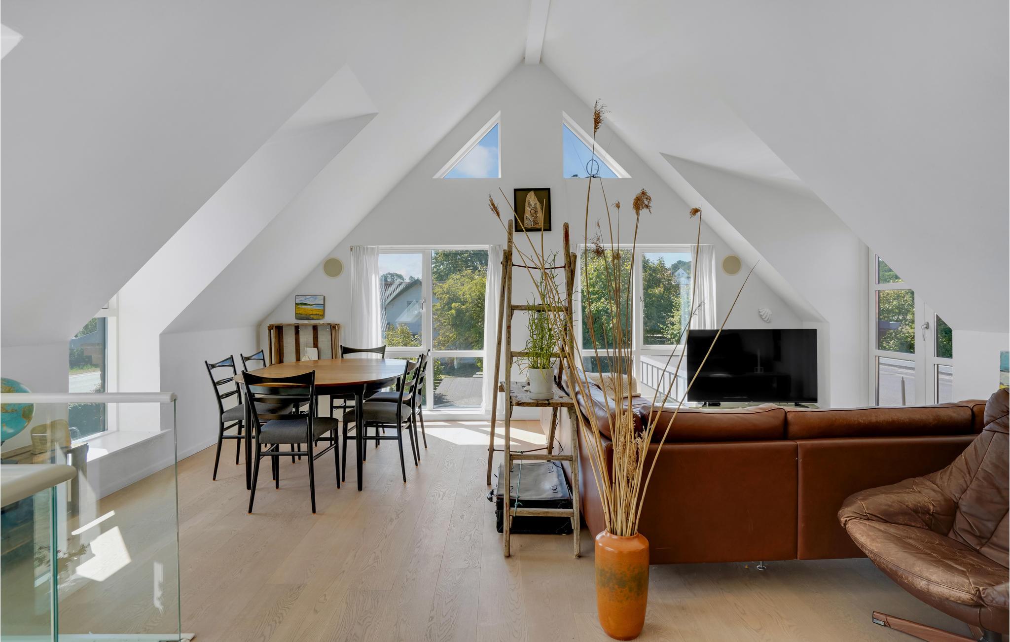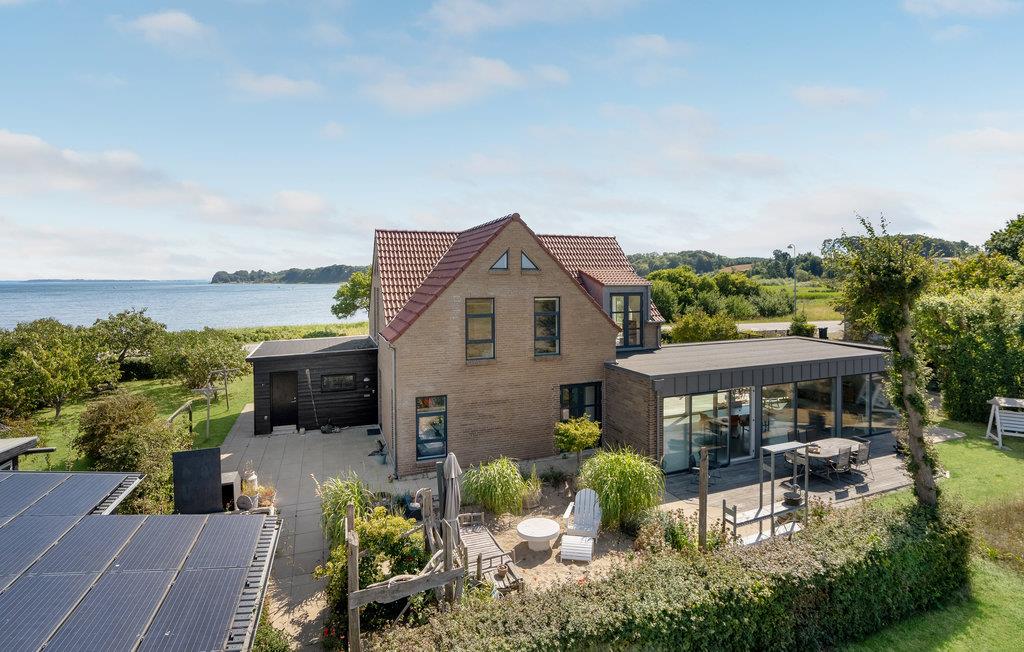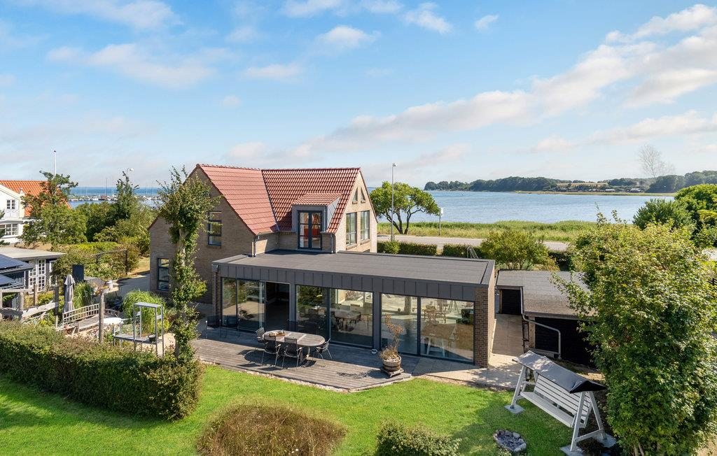 Velkommen til dette store feriehus med panoramaudsigt over vandet. Det er meget lyst og smagfuldt indrettet og har plads til en stor familie eller to små familier. Huset er særdeles veludstyret, så I ikke kommer til at mangle noget. Det byder bl.a. på et aktivitetsrum, en hyggelig TV-stue og en spisestue med fantastisk udsigt gennem store panoramavinduer.