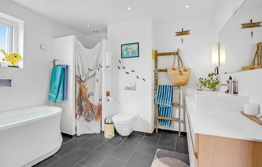 Til huset hører en stor terrasse og have med adskillige møbler til solbadning og udendørsspisning. Børnene vil elske at løbe rundt og lege på græsset, og hele familien kan spille fodbold, badminton og volleyball. I har selvfølgelig også grill til rådighed, så I kan samles til hyggelige grillaftener. Derudover er der bålplads til snobrødsbagning eller hyggesnak sent om aftenen, mens flammerne lyser op i mørket.