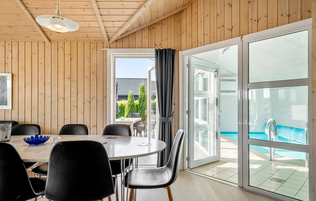 Tilbring afslappende dage i dette førsteklasses feriehus ikke langt fra Lillebælt. De smukke møbler og den behagelige træatmosfære skaber de bedste betingelser for et afslappende ophold med hele familien. Det åbne opholdsområde kombinerer køkken, spiseplads og siddeområde til en hyggelig helhed. Store vinduer strømmer lys ind i rummet og giver en bred udsigt over terrassen og den velholdte have. Et særligt højdepunkt indendørs er poolen, som tilbyder badesjov med udsigt over de grønne områder uanset vejret. Spabadet og saunaen indbyder også til afslapning.