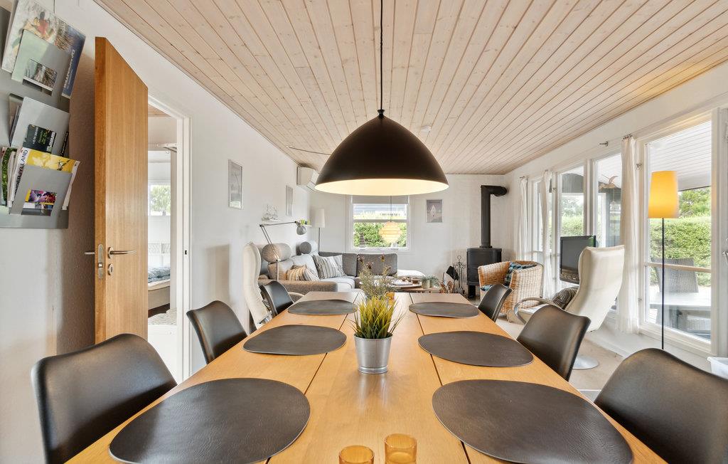 Stilfuldt feriehus i Hejlsminde tæt på strand med brændeovn, have og moderne faciliteter.