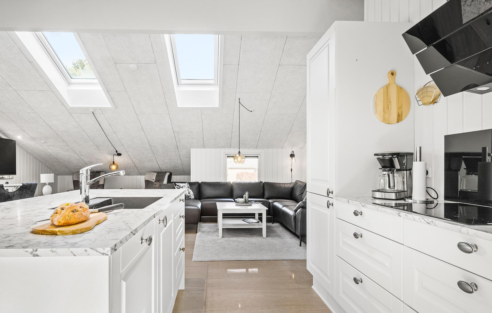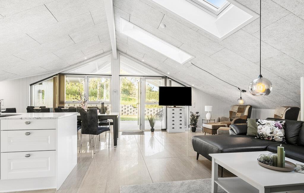 Jeres stilfulde feriehus, med plads til to familier, ligger tæt ved kysten af Lillebælt i Hejlsminde og kombinerer rolige omgivelser med mange fritidsmuligheder. Her finder I ideelle rammer for en afslappende ferie i Danmark. Indenfor venter jer en åben og lys stue med et smukt, åbent køkken, et elegant spisebord og behagelige siddepladser. Den gennemtænkte indretning skaber en behagelig og indbydende atmosfære. Takket være de store vinduespartier kan I nyde udsigten til haven, både når I slapper af i sofaen og ved fælles måltider.